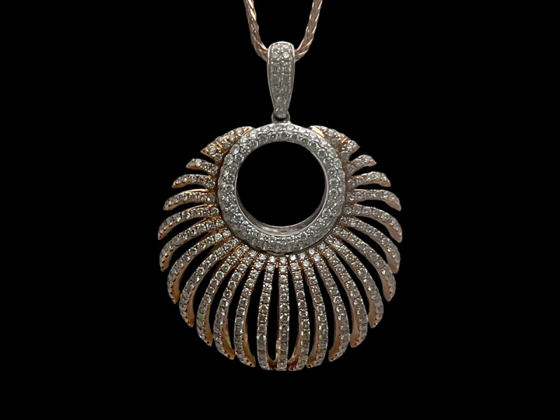 Lot 35 | Gold and pave diamond openwork pendant necklace