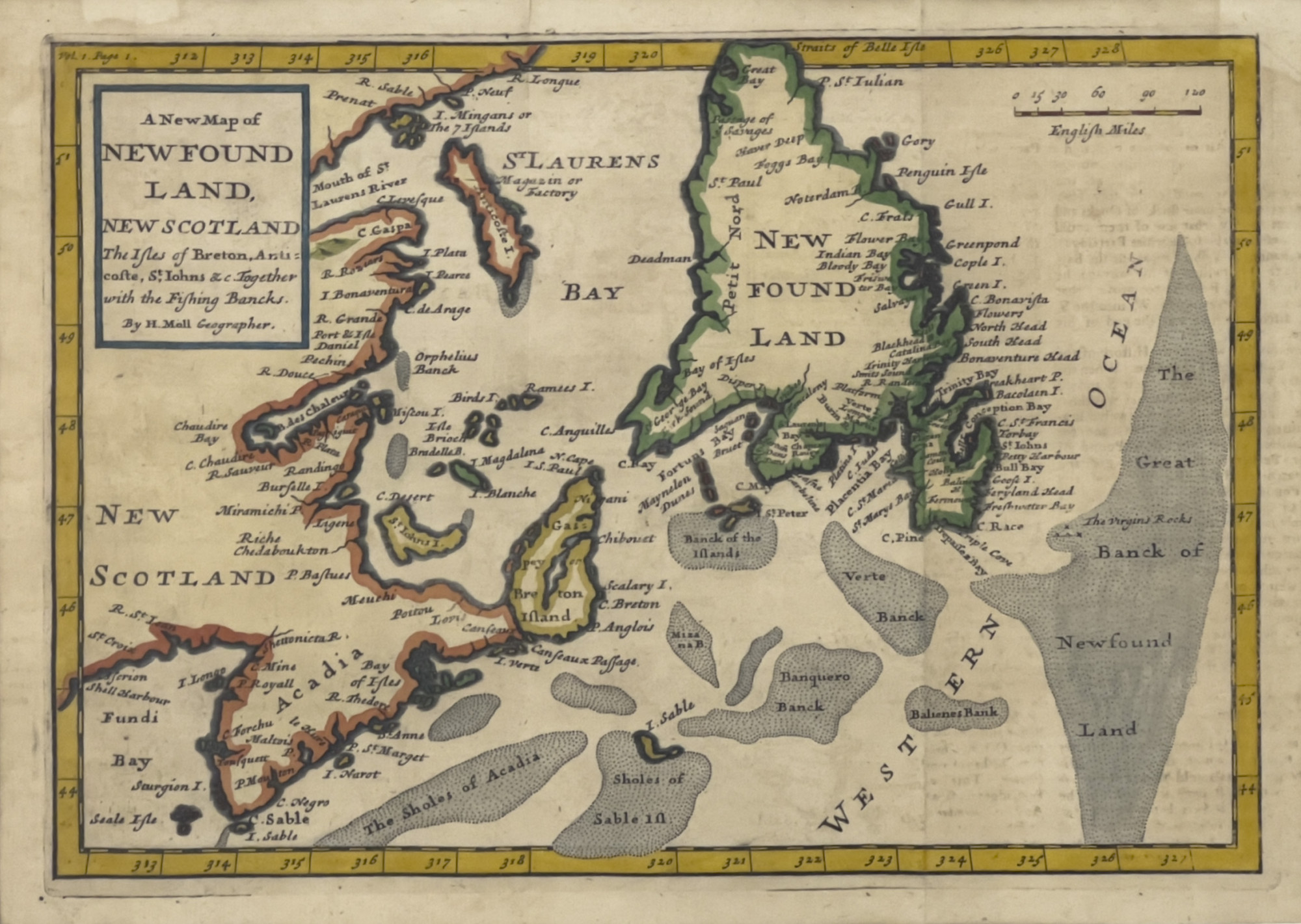Map depicting Newfoundland and New Scotland (Nova Scotia) by H. Moll Geographer