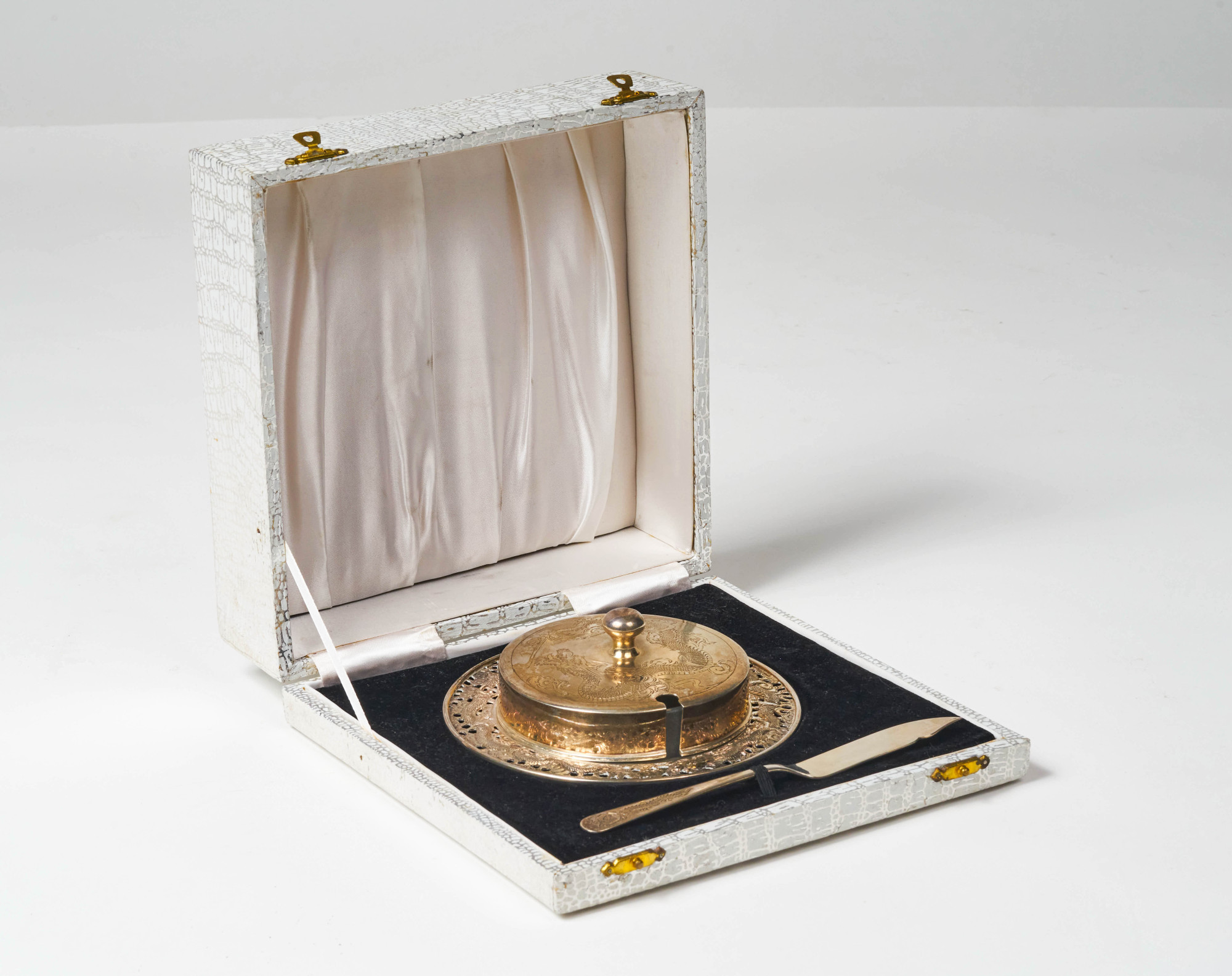 A Chinese Export Silver and Crystal Butter Dish with Knife c. 1940