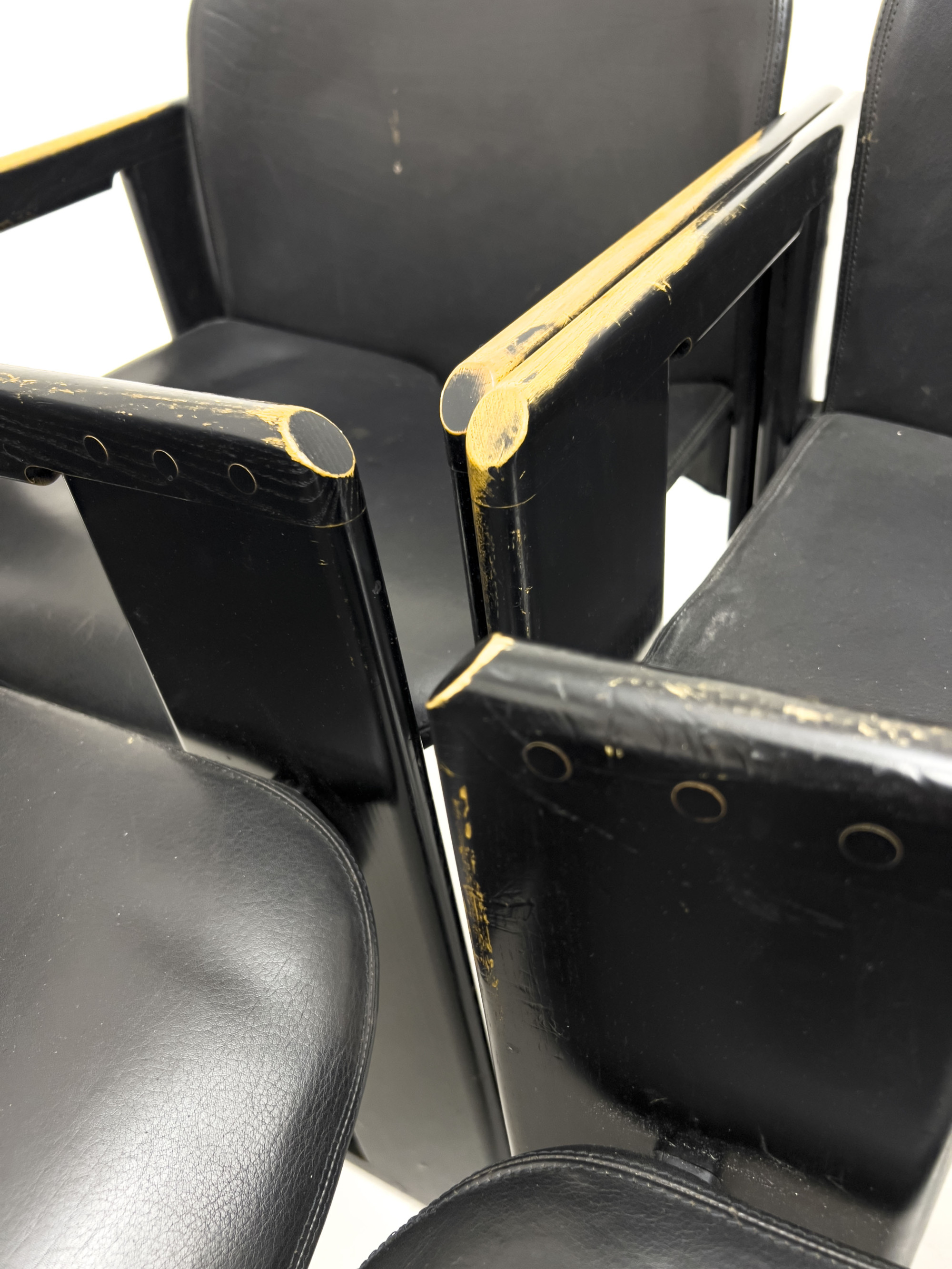 Designed by Afra and Tobia Scarpa for B&B Italia with black wood arms, black leather seats and seat backs