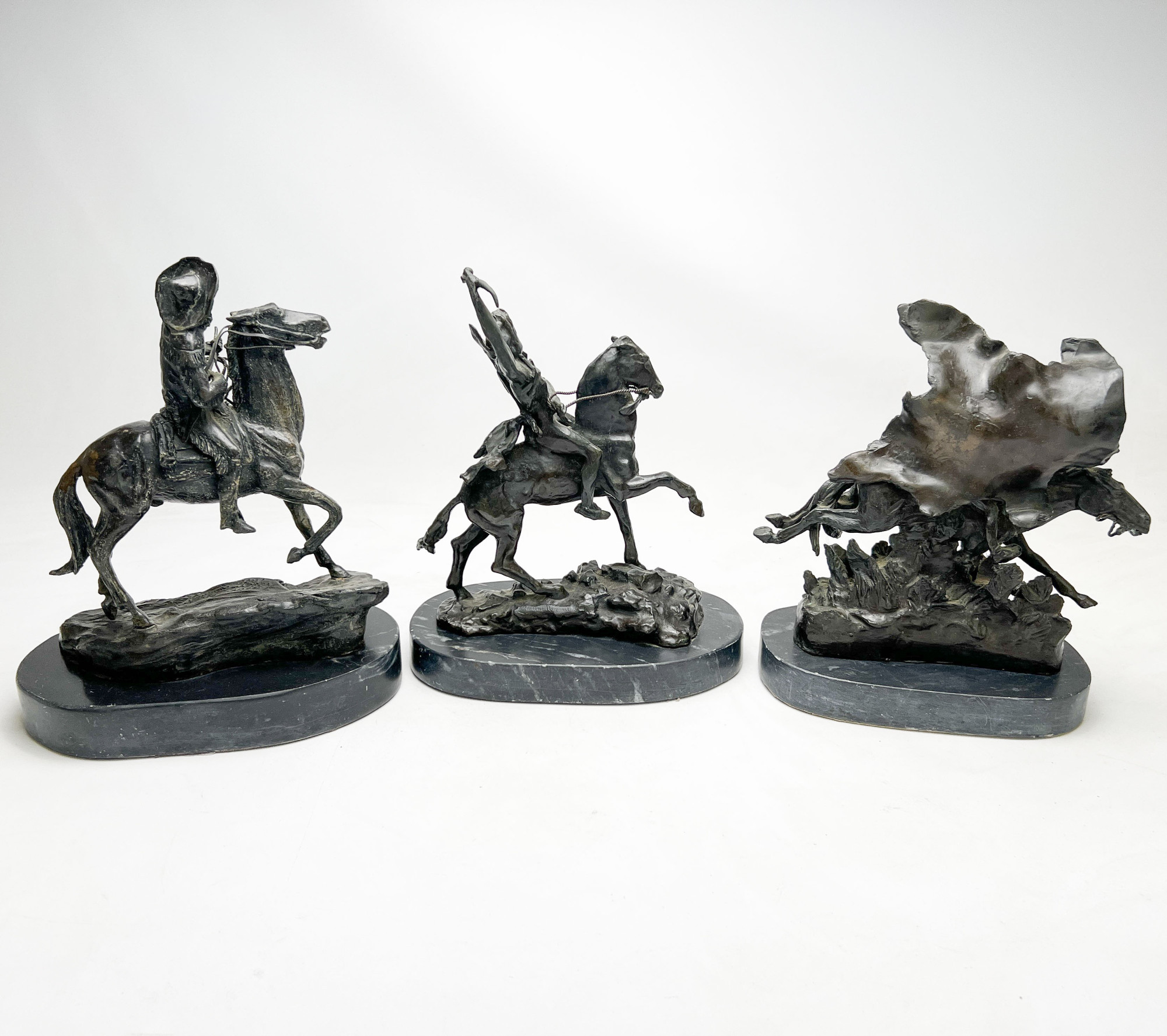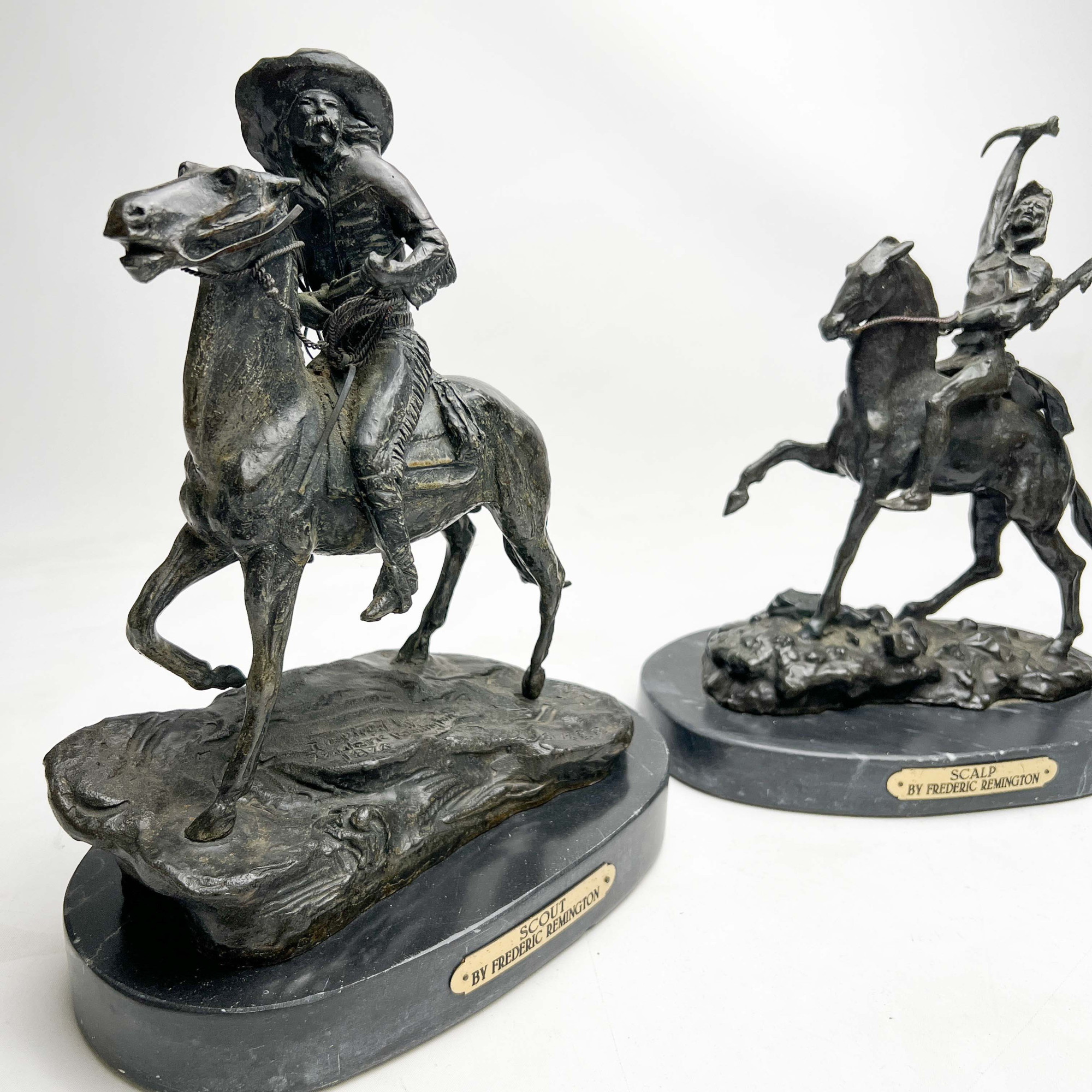 bronze Scout: 11 x 10 1/2 x 6 1/2 inches each marked "Frederic Remington" to base