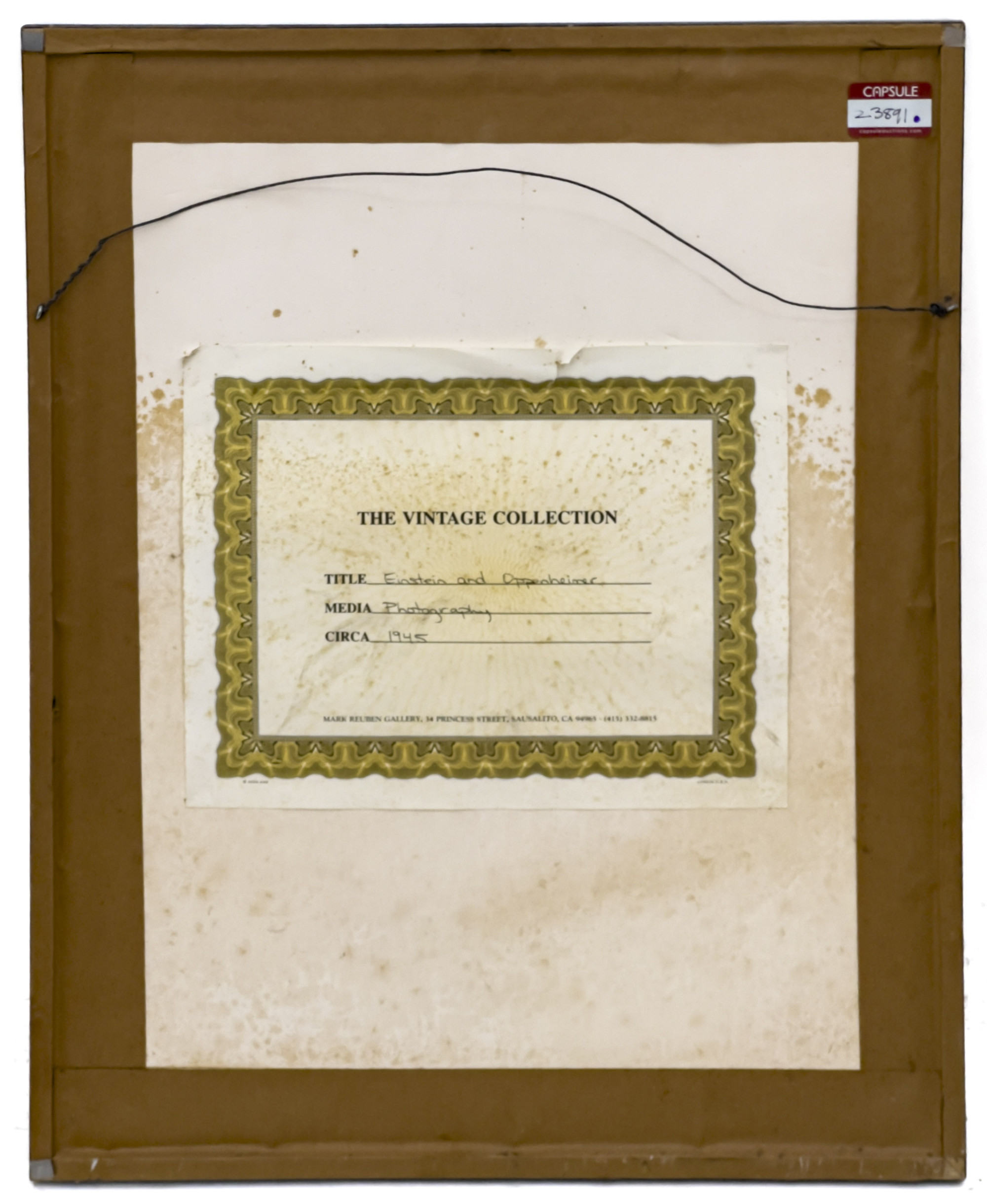 Art has not been examined out of the frame unless otherwise stated. Frames, lampshades, or items described as “supplementary” are not considered integral to the value of the lot and are excluded from condition assessments. This includes any mat, mounting, glazing, hanging apparatus, case, box, or stand. Timepiece movements, lighting elements and items with mechanical or electrical components have not been thoroughly tested and are not covered under warranty by Capsule.