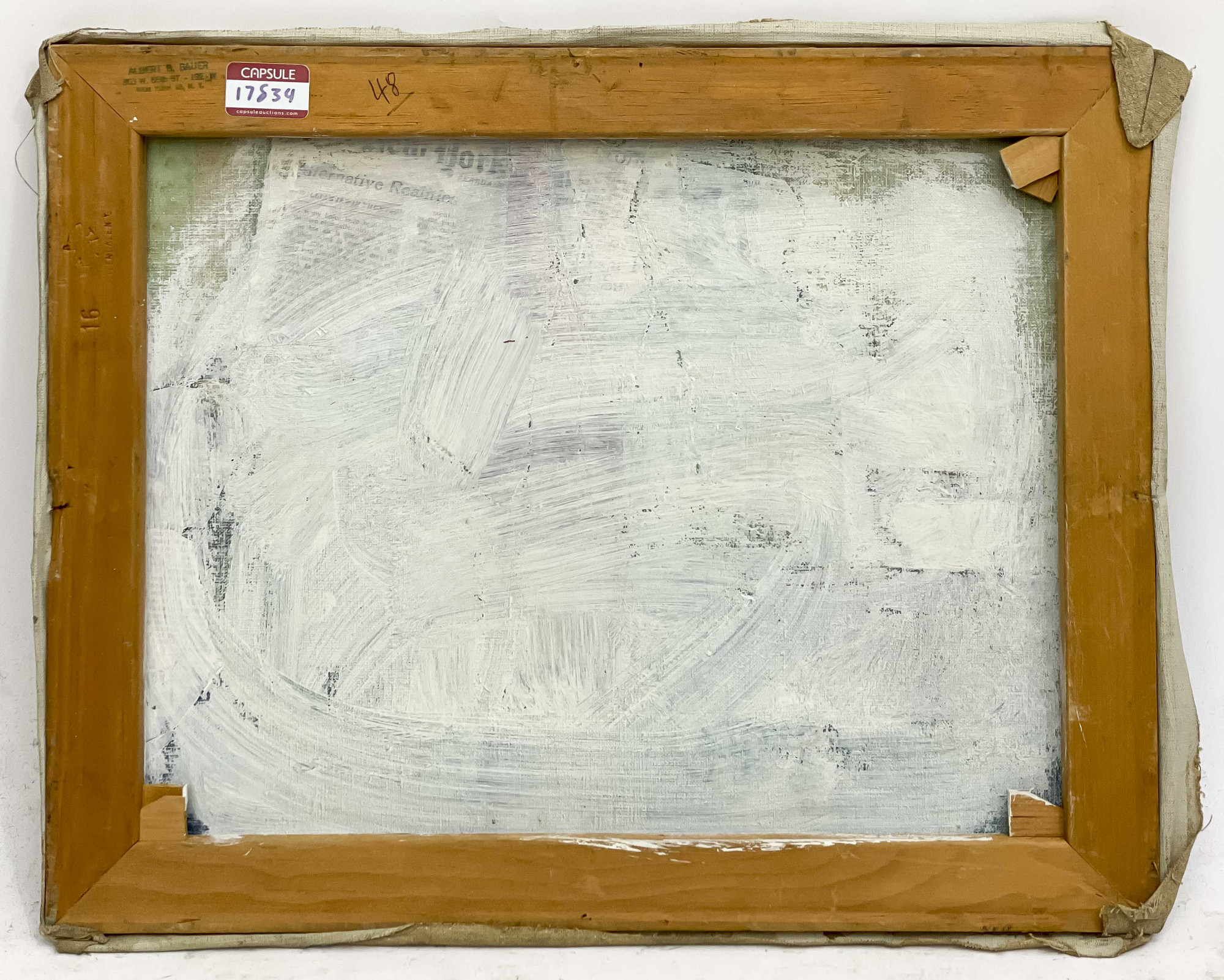 Art has not been examined out of the frame unless otherwise stated. Frames, lampshades, or items described as “supplementary” are not considered integral to the value of the lot and are excluded from condition assessments. This includes any mat, mounting, glazing, hanging apparatus, case, box, or stand. Timepiece movements, lighting elements and items with mechanical or electrical components have not been thoroughly tested and are not covered under warranty by Capsule.