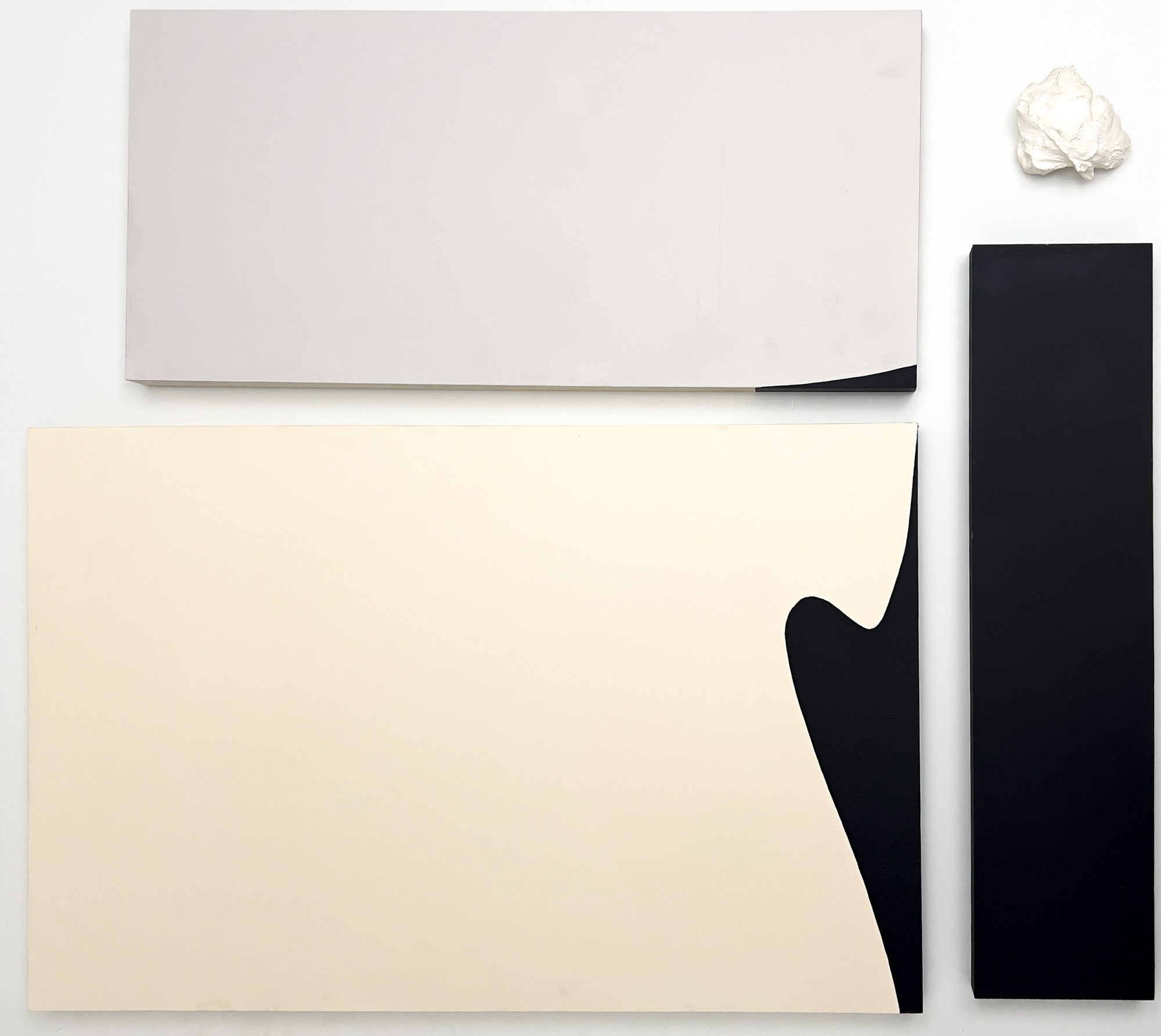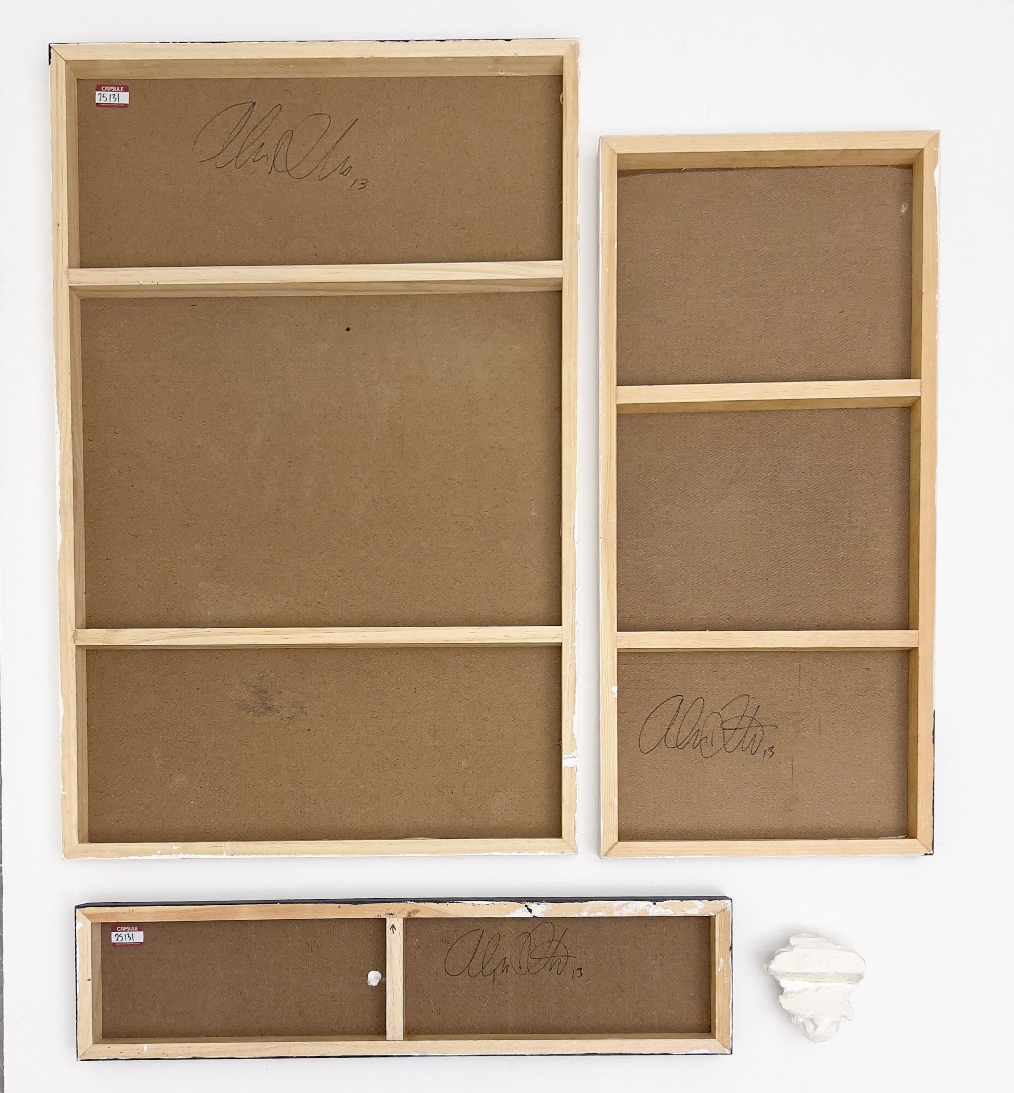 painted wood panels and plaster largest: 36 x 23 1/2 inches signed verso