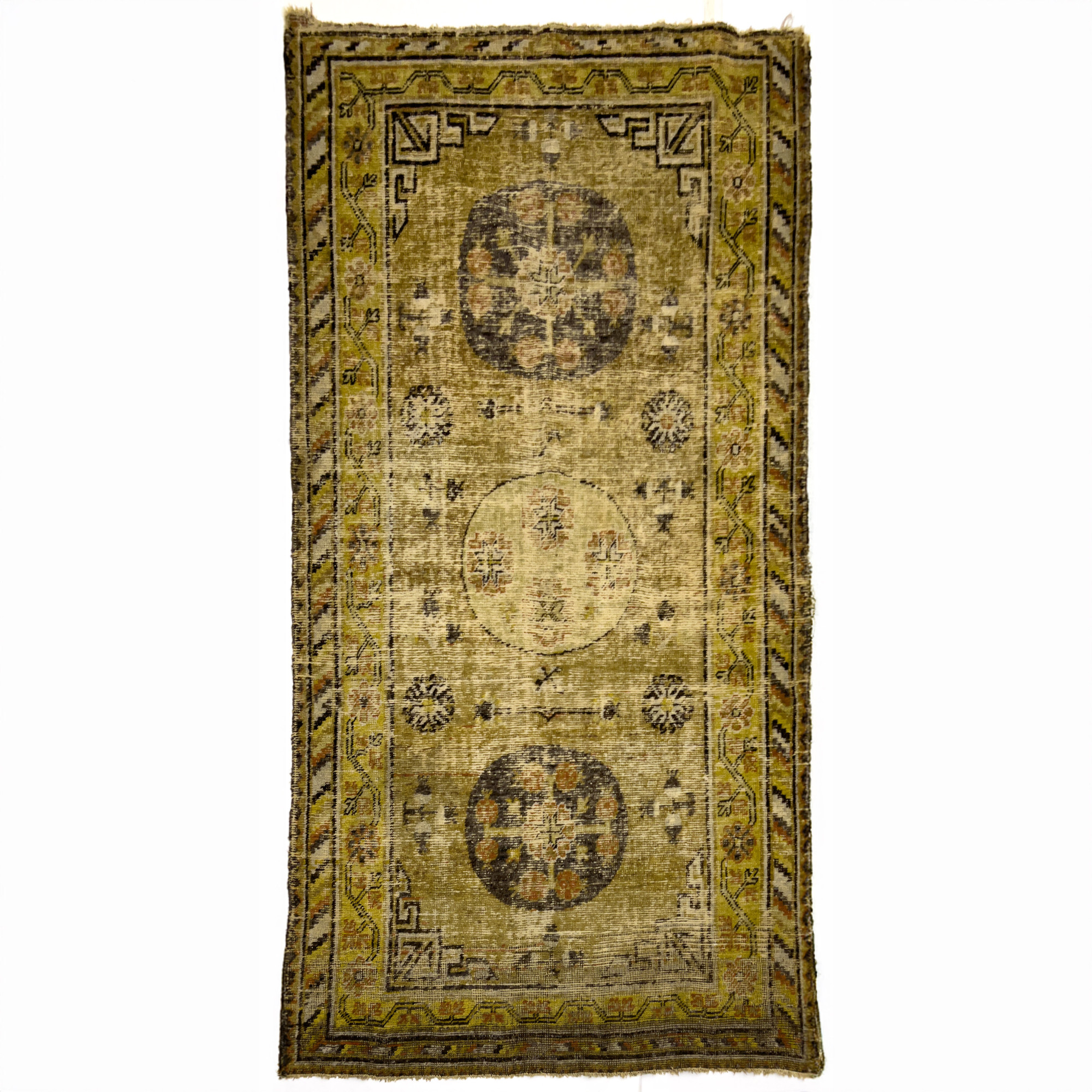 Yellow ground with multicolored border and two medallions