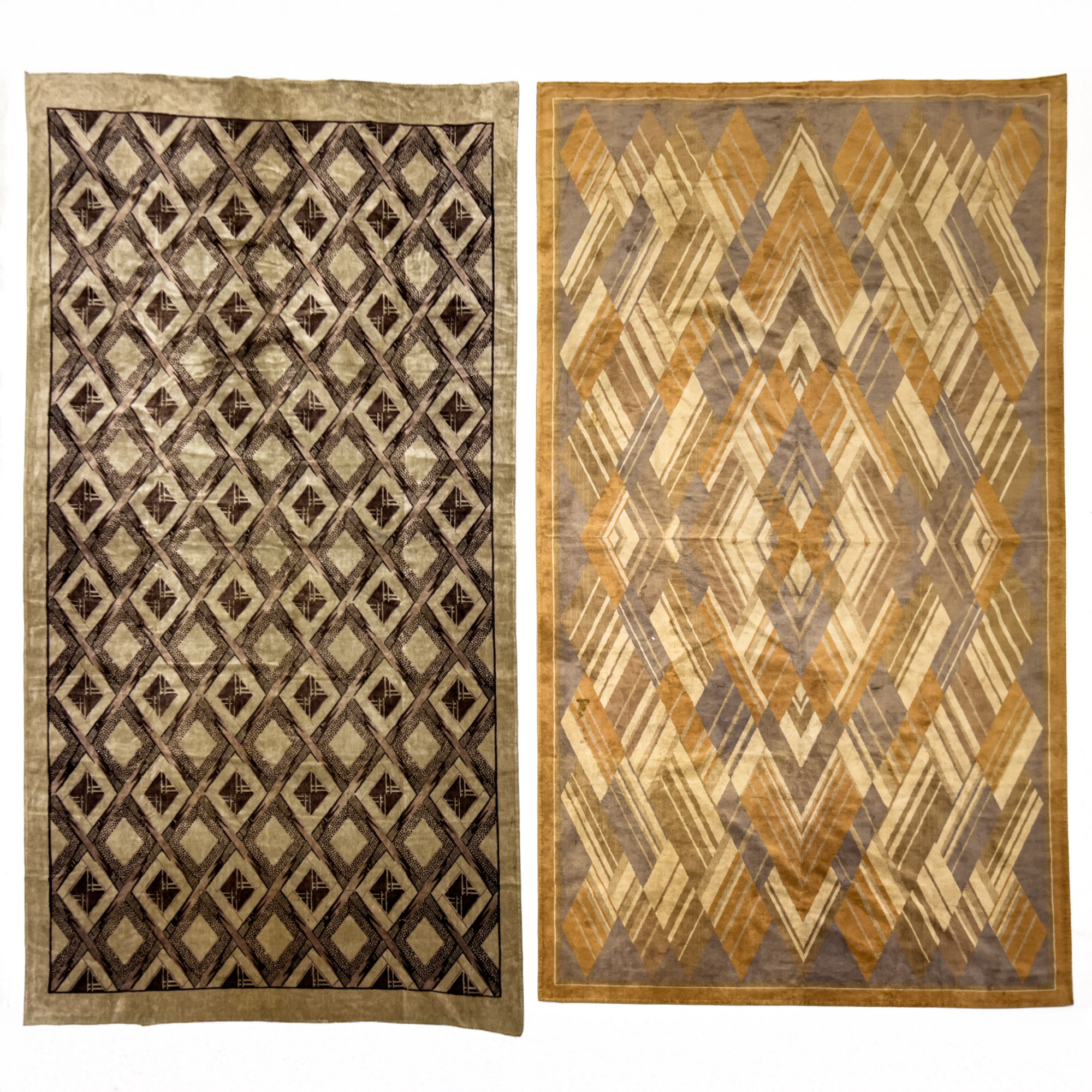 Comprising two Art Deco fabrics, each featuring geometric designs
