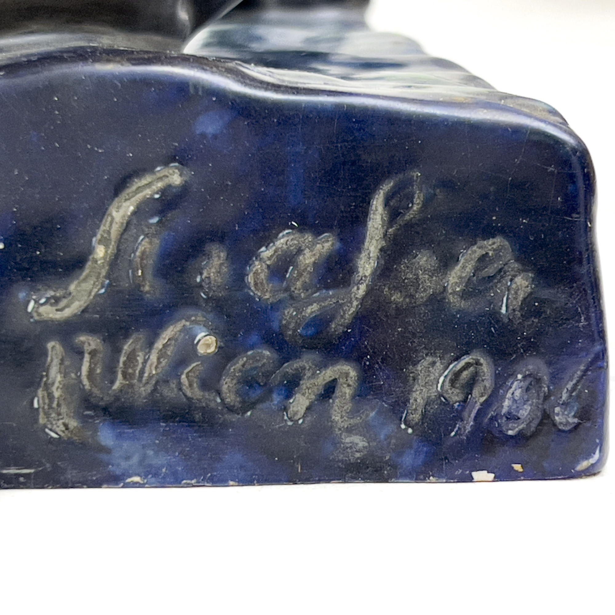 incised signature to base, manufacturer marks to underside