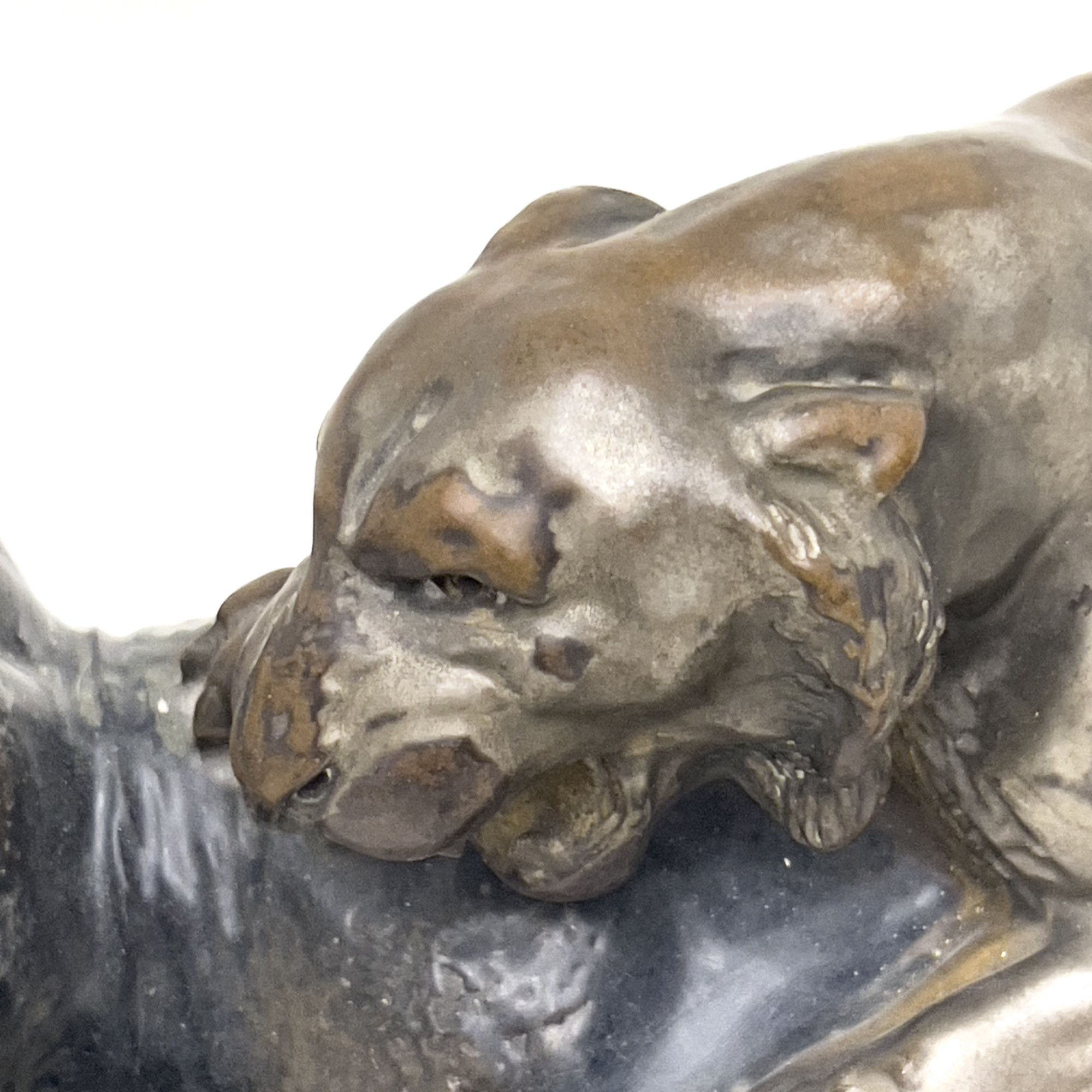 Ceramic figural group of an elephant and two lions, for Riessner, Stellmacher and Kessel (RSt&K), otherwise known by trade name “Amphora"