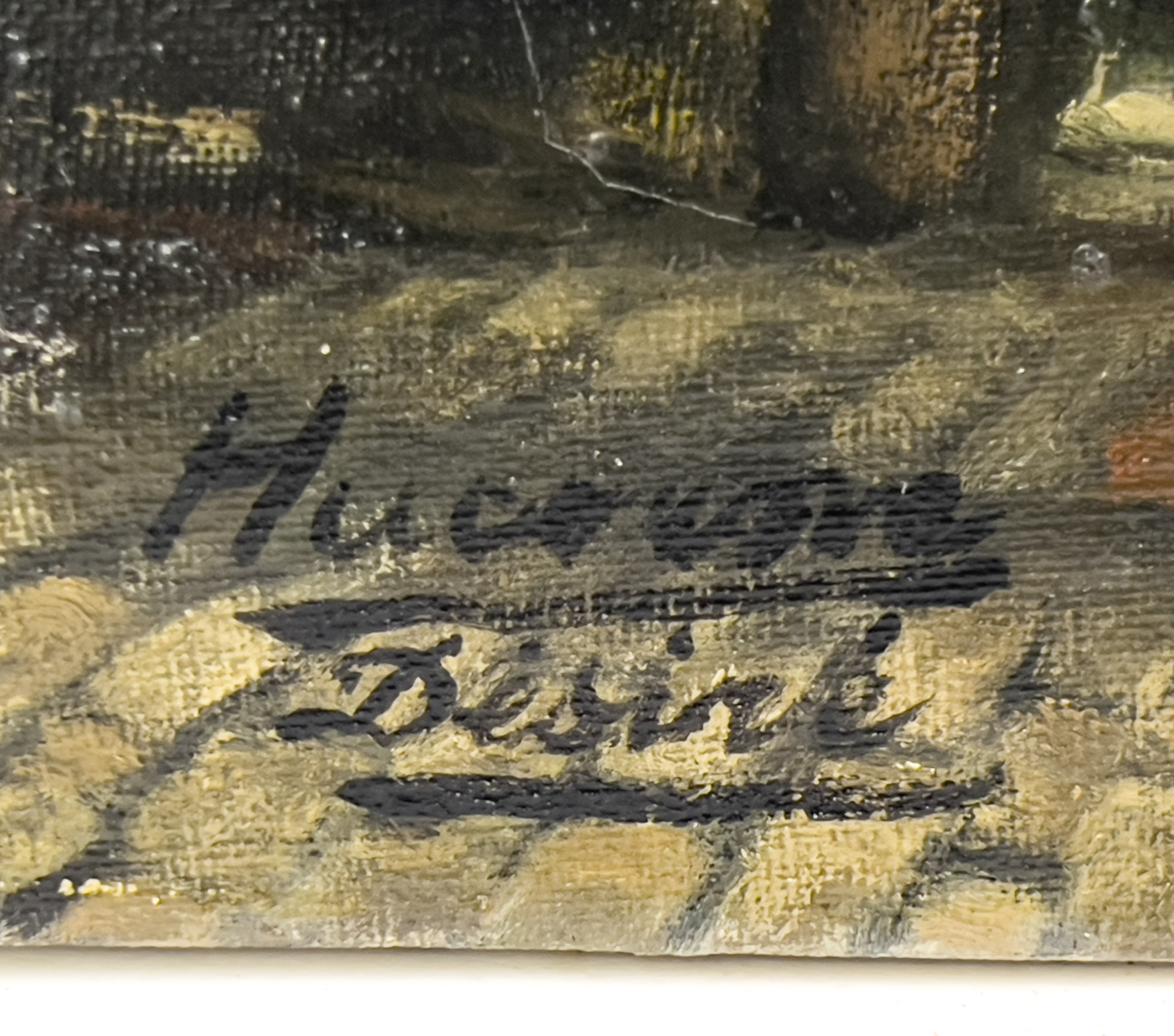 Older European street scene, possibly Belgian, with signature "H... Desire"