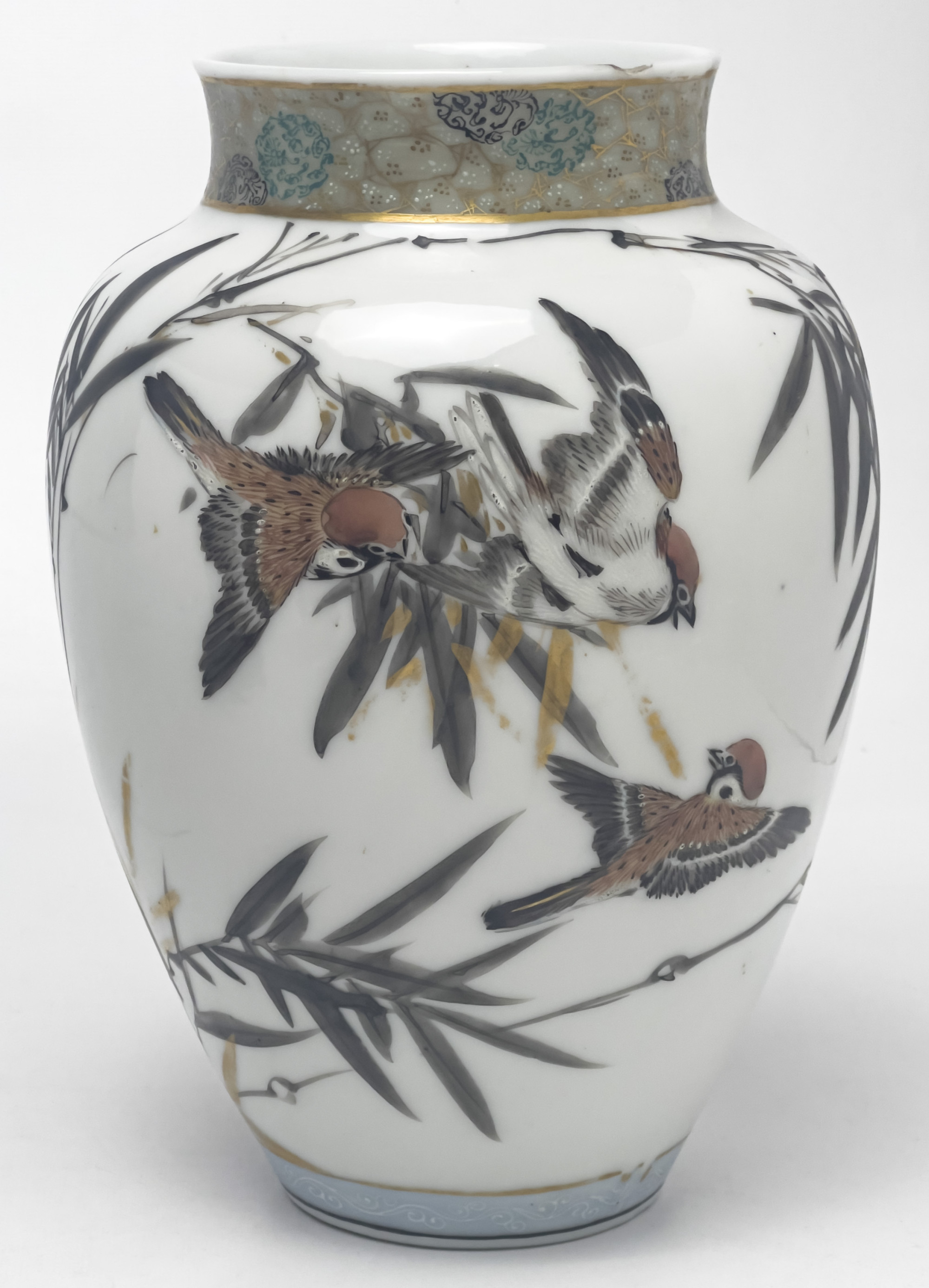 Comprising two Chinese Famille Verte vase, Japanese vase with birds, and Japanese vase