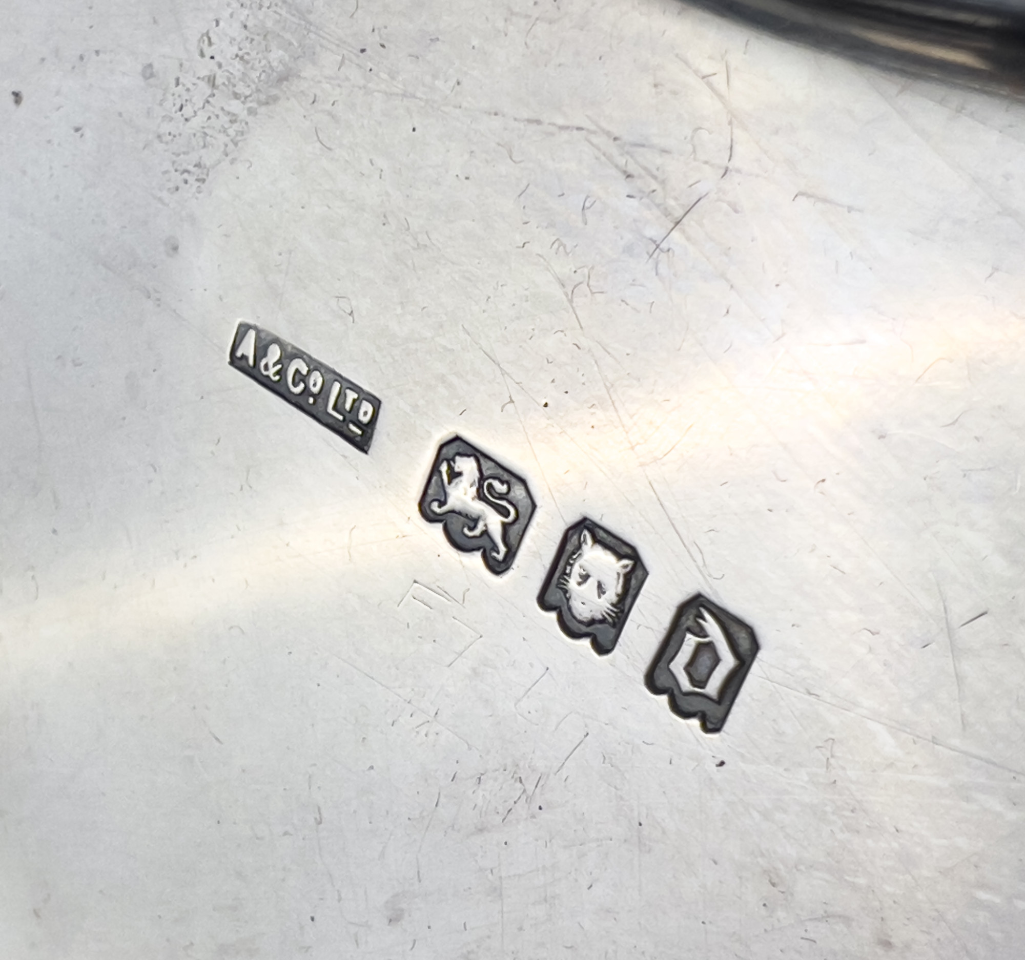 overall good condition, with some areas of tarnishing, minor abrasions, and minor dents