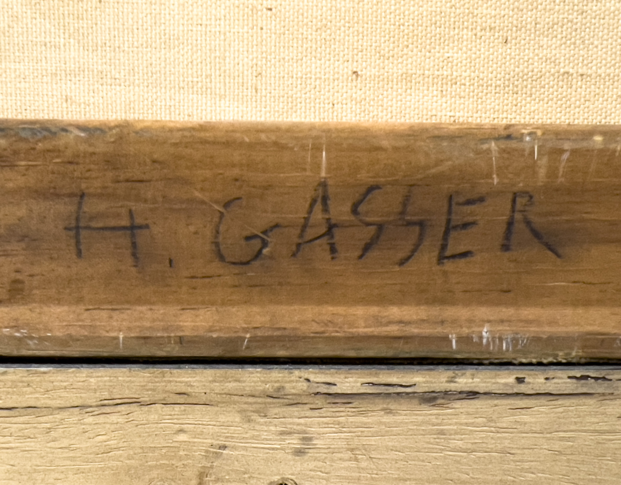 "H. Gasser" and "Fox Hall Farm" written on stretchers