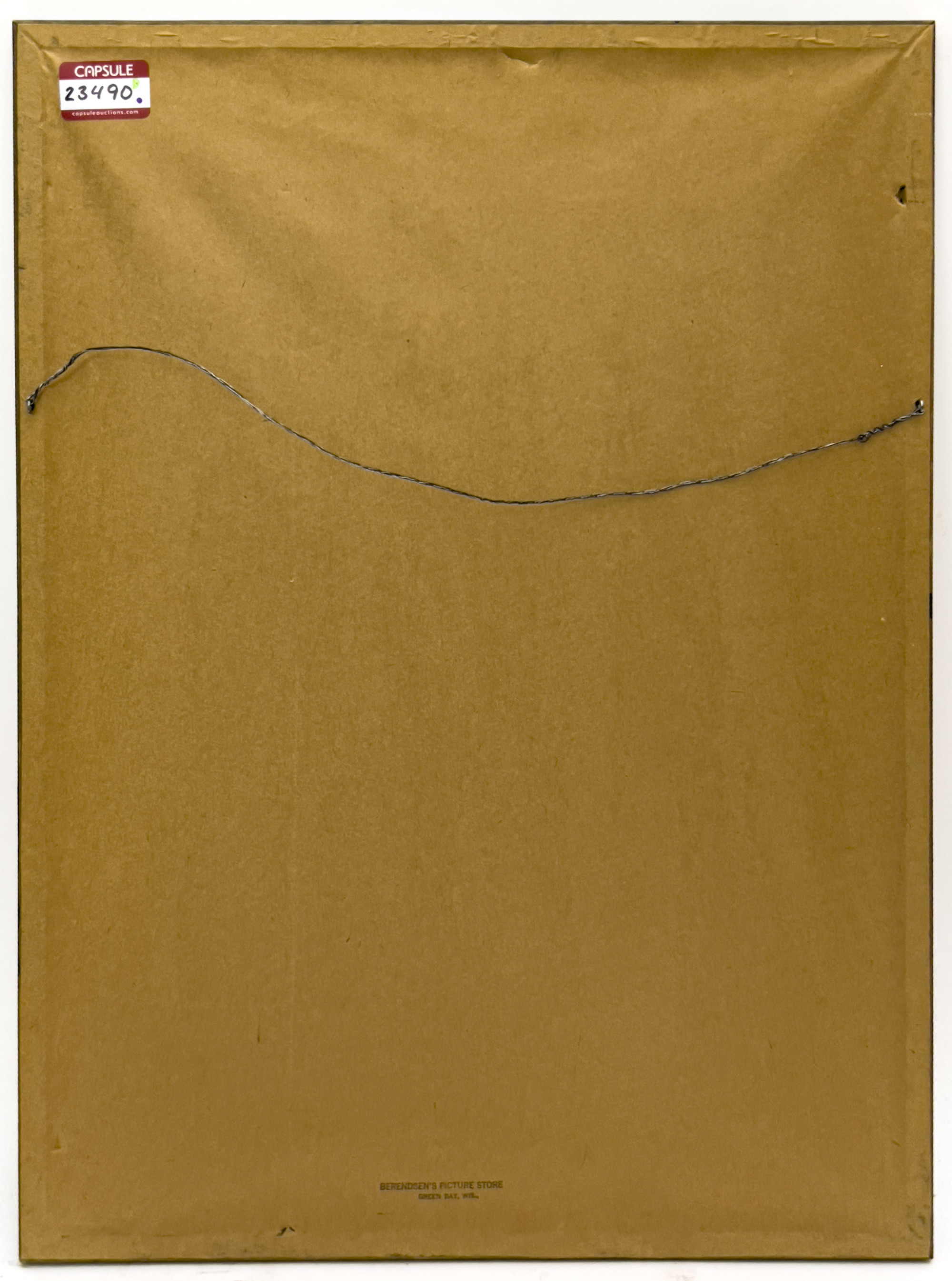 Art has not been examined out of the frame unless otherwise stated. Frames, lampshades, or items described as “supplementary” are not considered integral to the value of the lot and are excluded from condition assessments. This includes any mat, mounting, glazing, hanging apparatus, case, box, or stand. Timepiece movements, lighting elements and items with mechanical or electrical components have not been thoroughly tested and are not covered under warranty by Capsule.