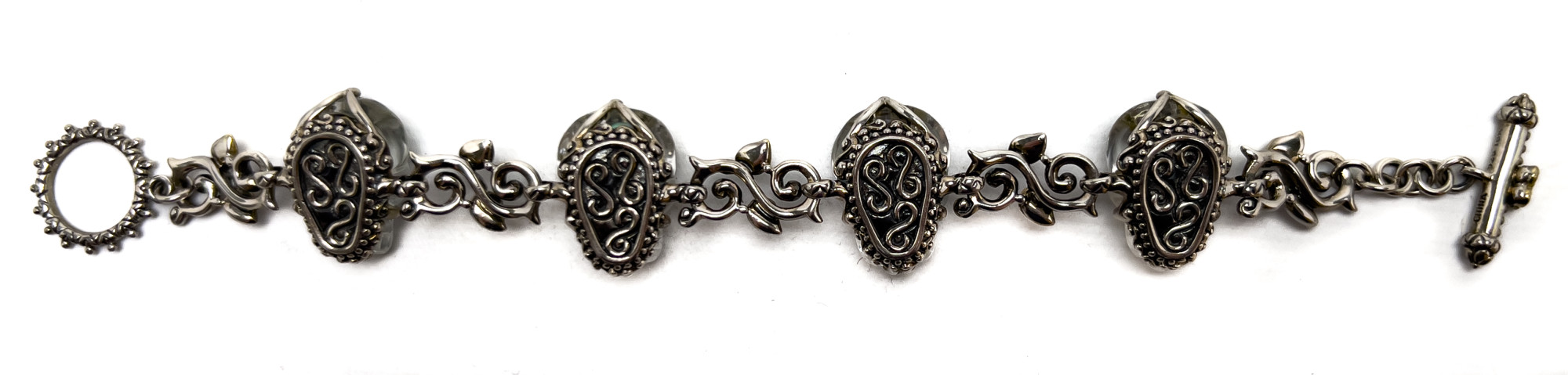 sterling, 18K gold, abalone, rhodolite bracelet length: 7 inches each marked