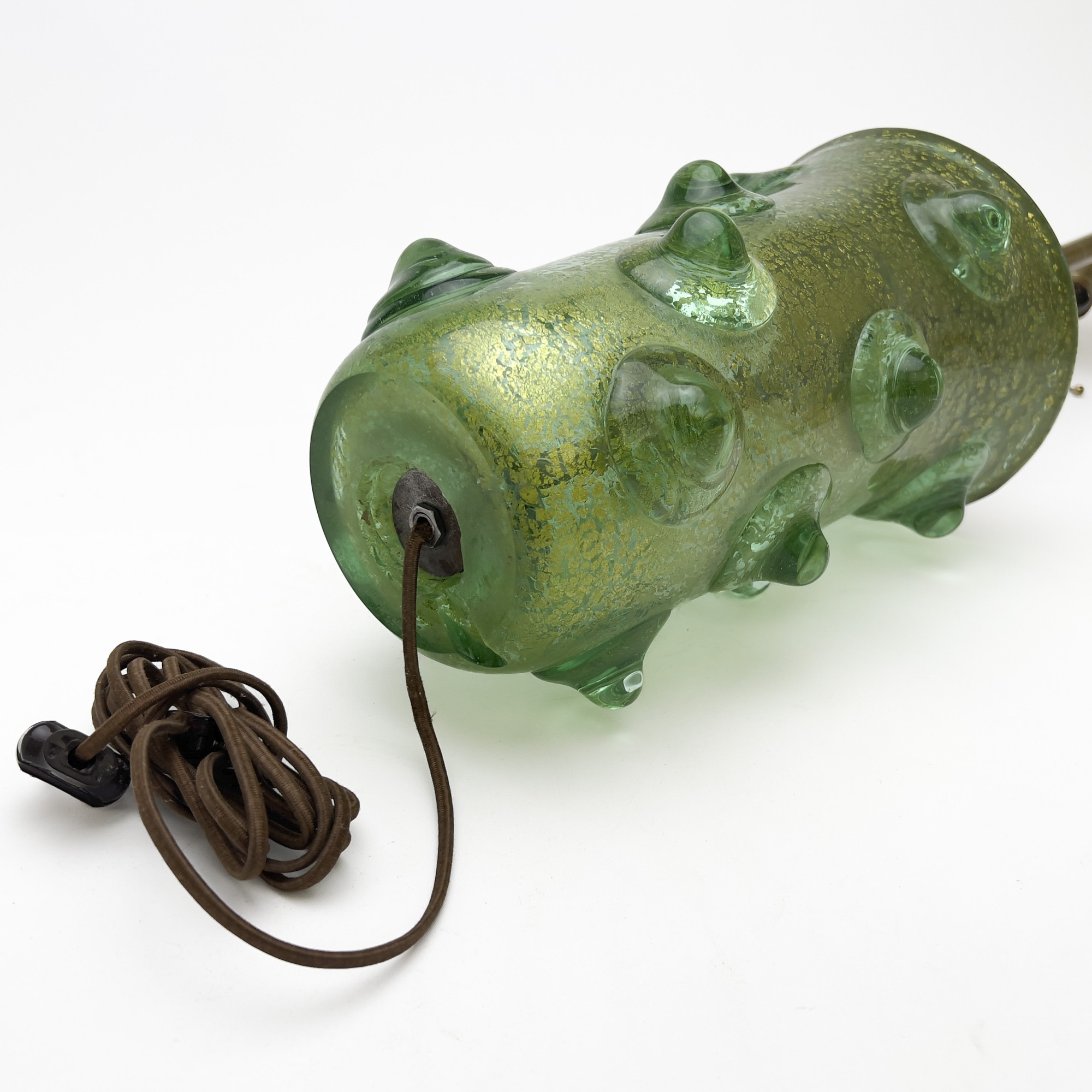 Murano Glass Table Lamp in green with gold inclusions and silk shade