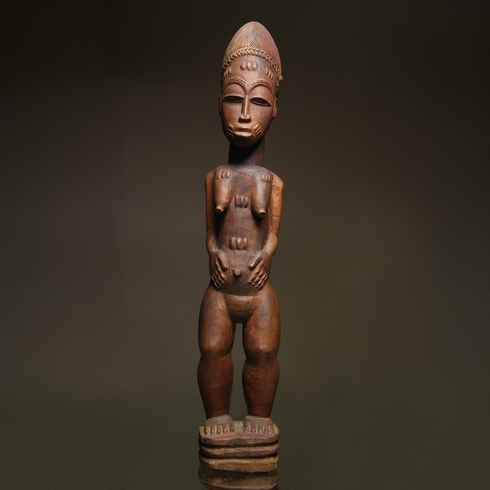 Motivated by the decision to not be held back by racism and denied professional opportunities in pre-civil rights era New York City, the Waites relocated to Nigeria in 1961. There Robert co-founded and managed West Africa’s first postcolonial indigenous electronics company in Ibadan, in partnership with Chief Anofi Guobadia of Benin. Robert details this experience in his autobiography Haunted by Africa. During this period, Joan taught French, collected Yoruba masks and sculptures, and even performed on Nigerian television. Upon returning to the United States in 1965, Joan continued to teach, sing, and lecture widely, performing with ensembles of New Jersey, including Return to the Source and the Jubilee Singers of Westminster Choir College. Joan co-founded the Afro-American Educational Center of Northern New Jersey, for which she received WCBS-TV’s Black History Month “Fulfilling the Dream” award in 1995. Robert was recruited by ITT, where he directed global operations as a marketing executive. On his 80th birthday, shortly after retiring as Vice President of Natural Resources, he was honored with a Benin bronze bust from Chief Anofi Guobadia, commemorating his Nigerian name, Omowali, meaning “the child has returned home.” Together, the Waites built a remarkable collection of African art, reflecting their personal experience and intellectual and cultural passions.