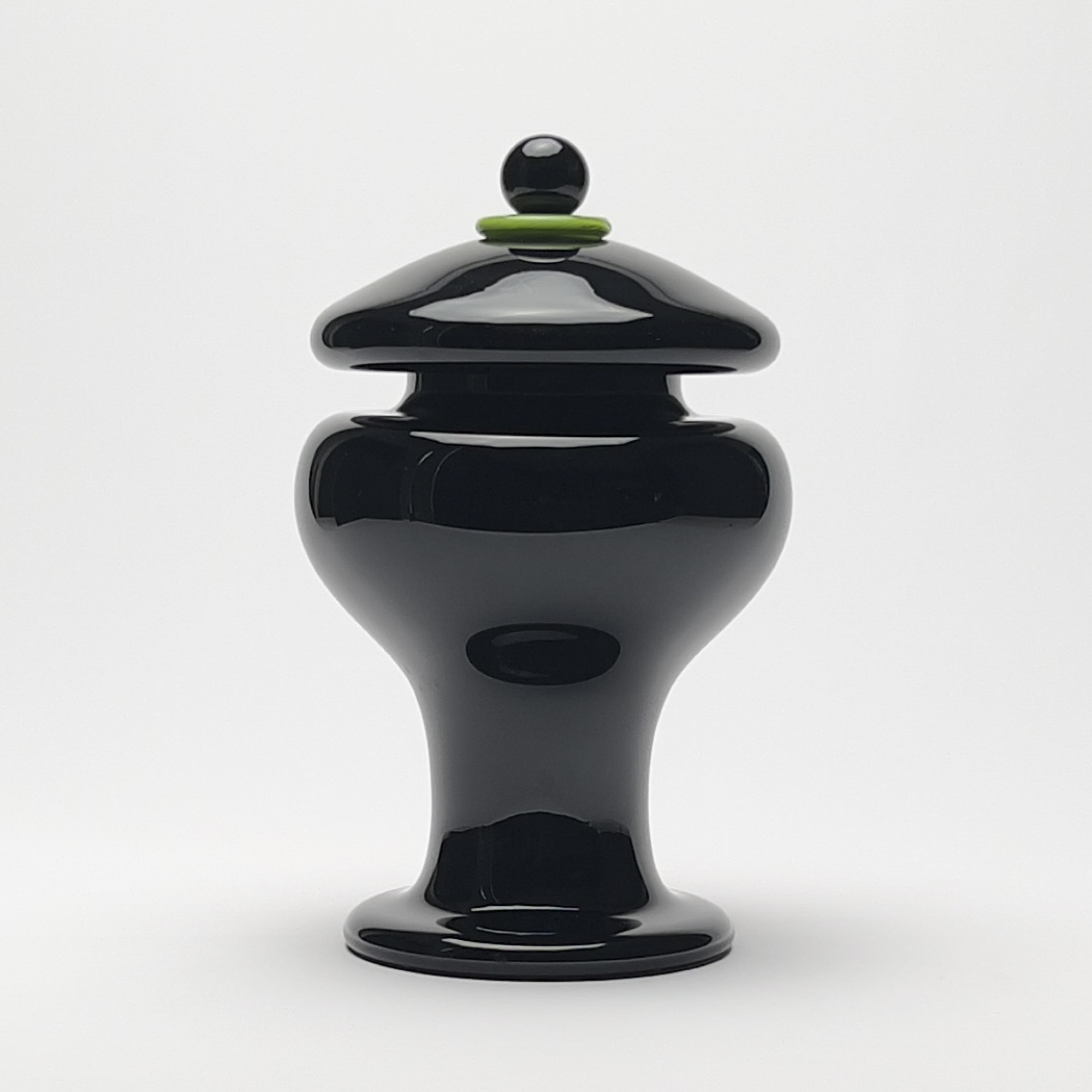 Black and Green Art Glass Vase with Lid (2000)
