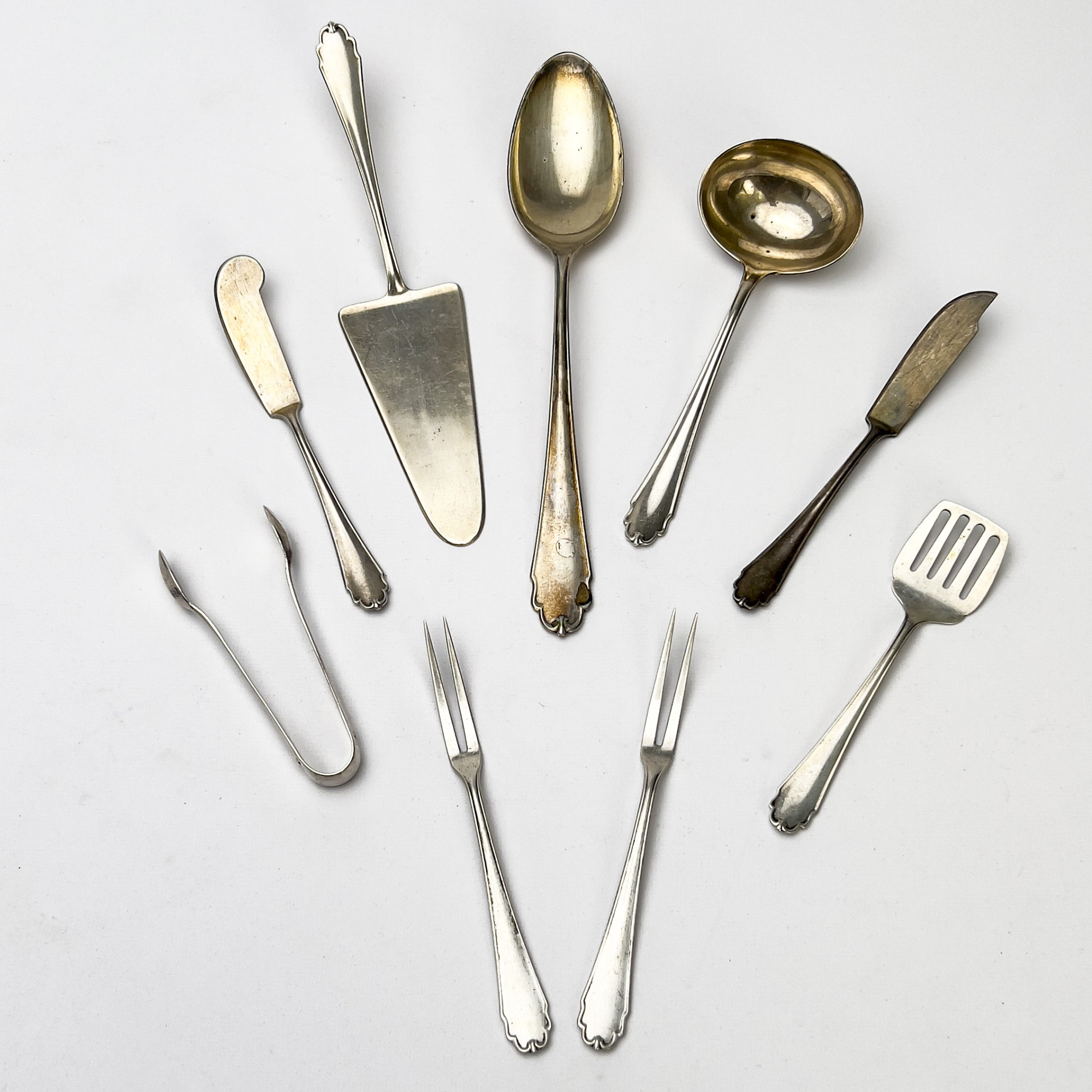 50 pieces of flatware and 7 serving pieces weighing approximately 2518 gm plus 15 knives