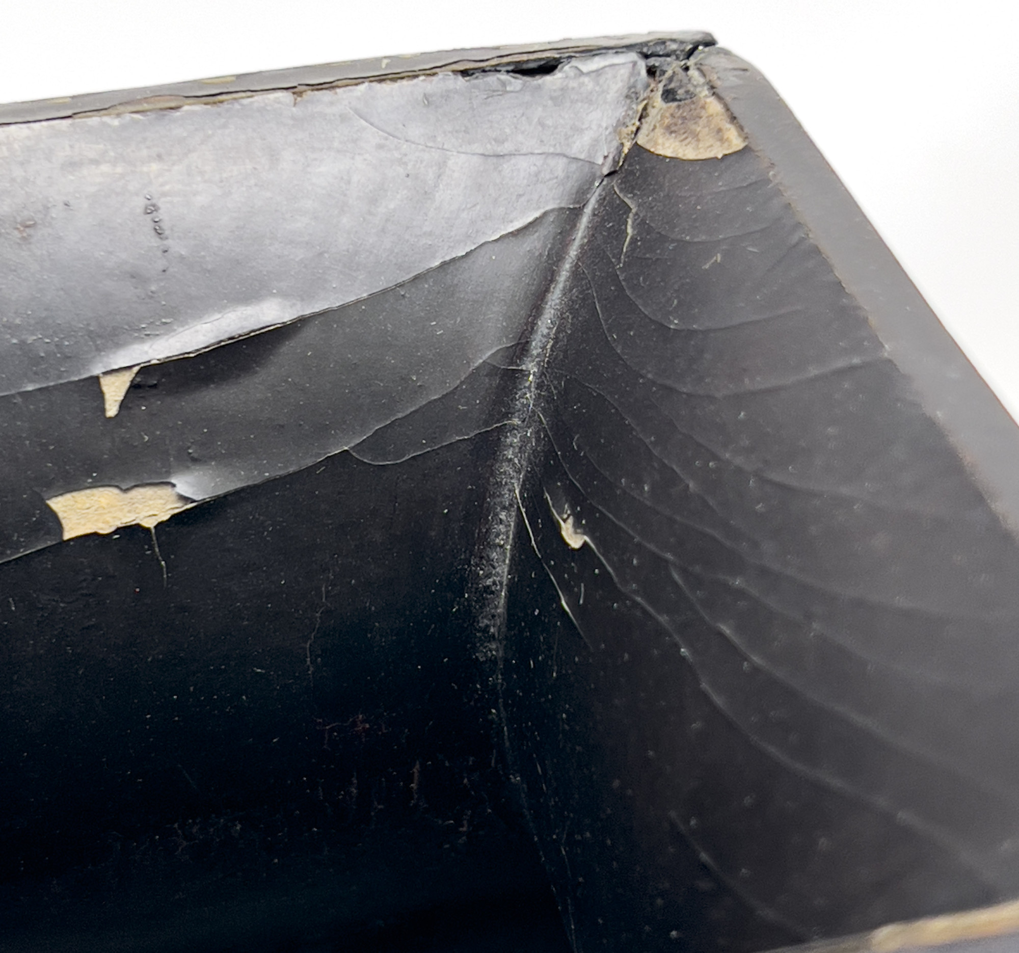 in overall good condition, with losses and stress cracks to black lacquered interior, with some minor hairline cracks, and some minor scuffs