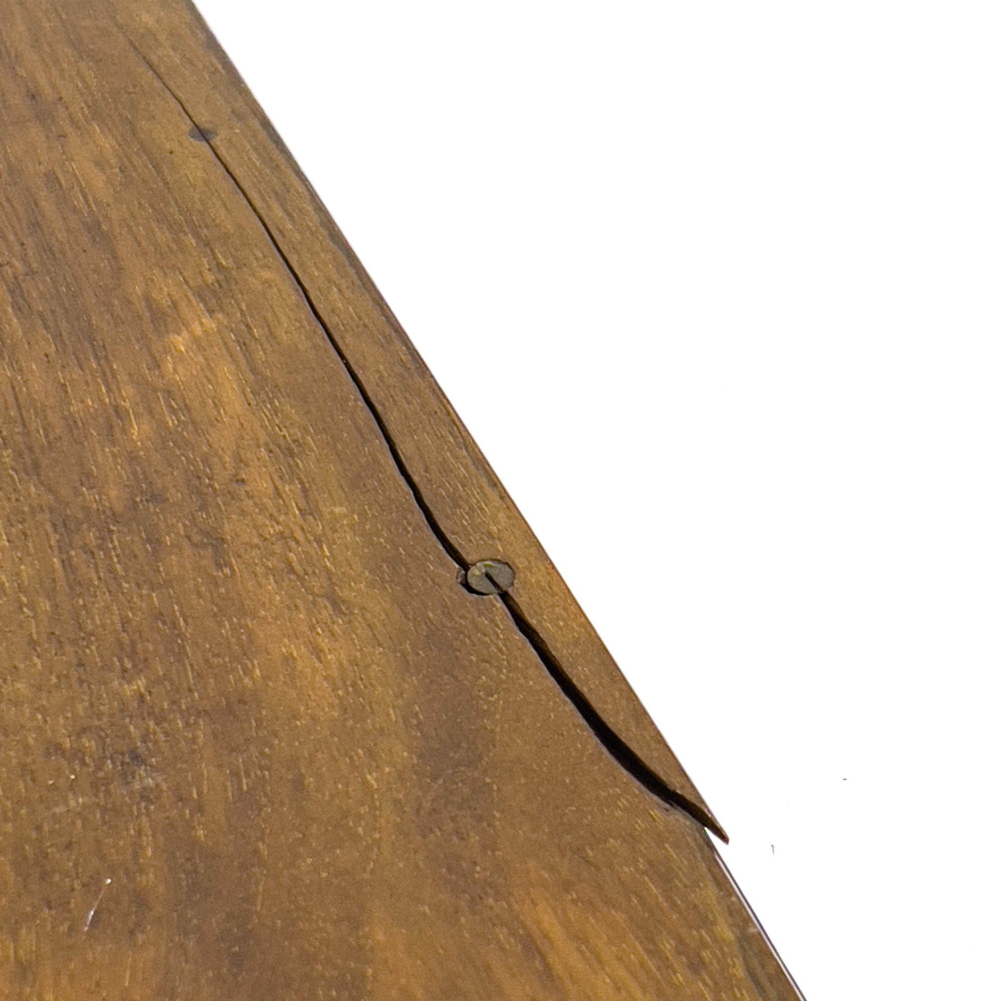 with areas of wood splitting and minor abrasions, one panel in warped, drips of latex paint to surface, other general wear