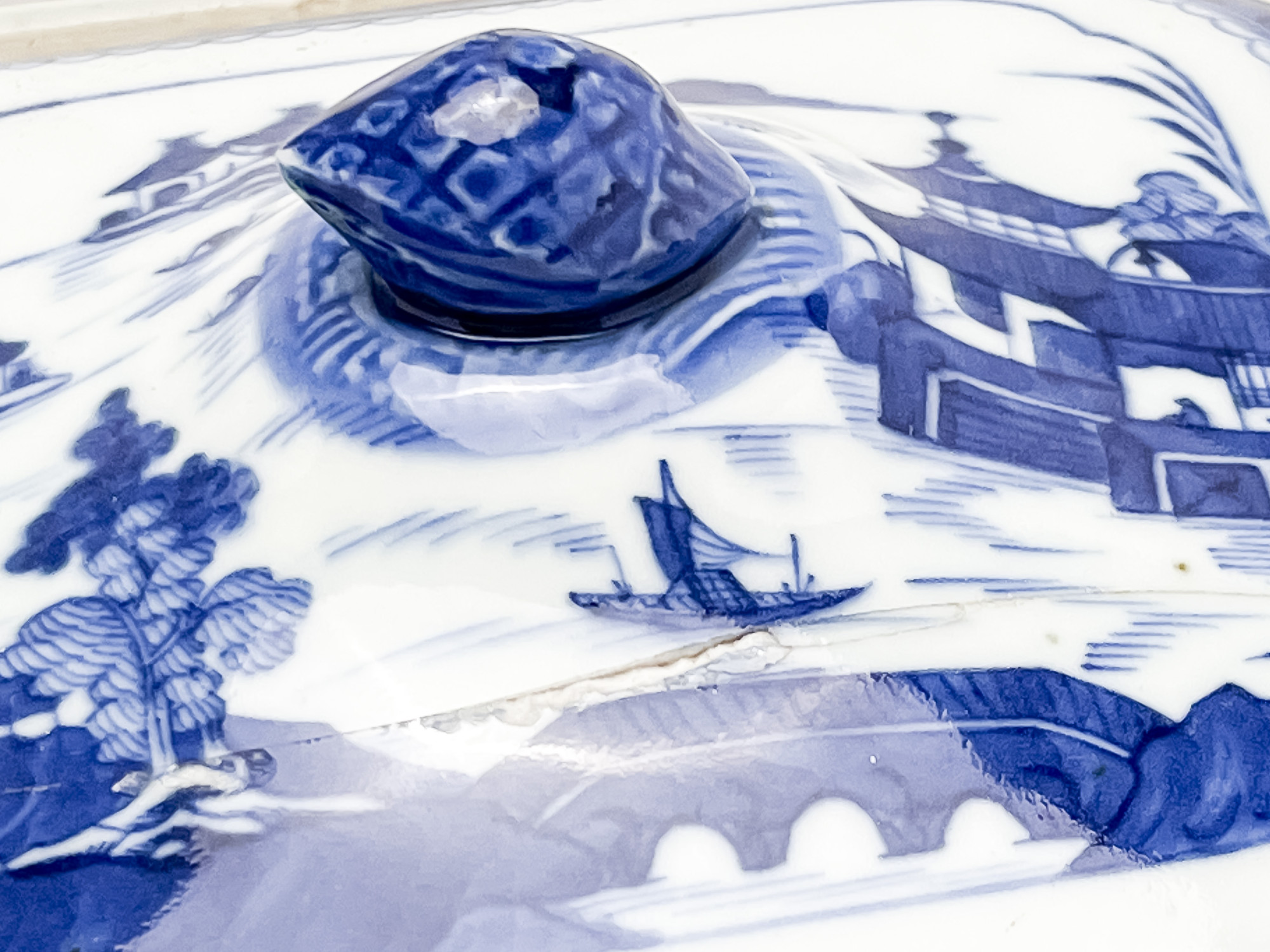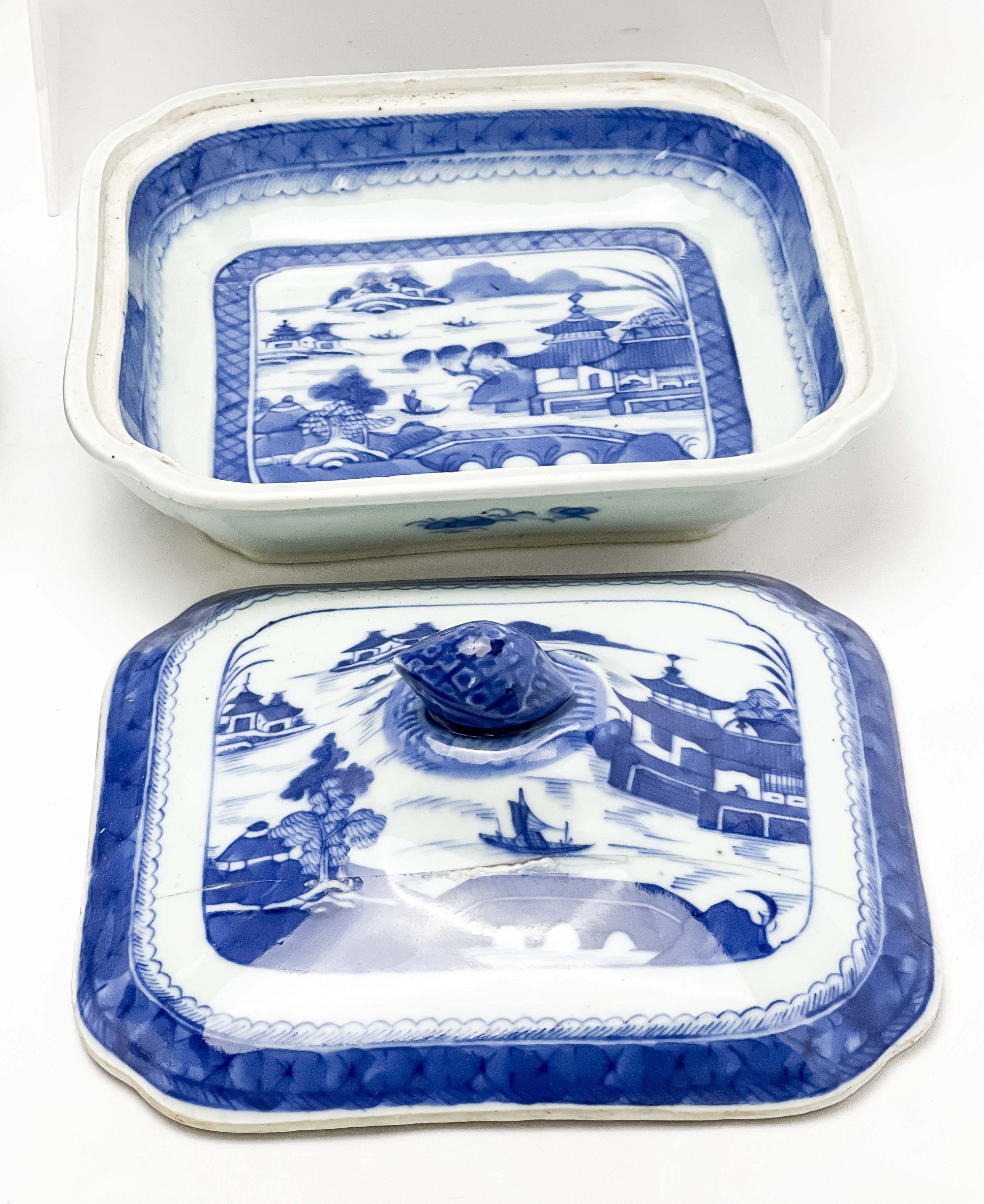each in overall good condition, with minor chips and wear to the rims of plates, repair to one tureen lid, othe wear and imperfections to glaze
