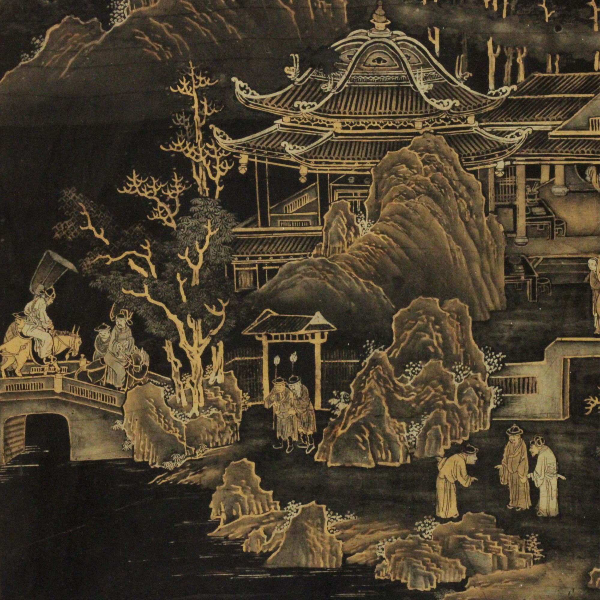 Chinese Gilt Decorated Black Lacquer Panel 19th C