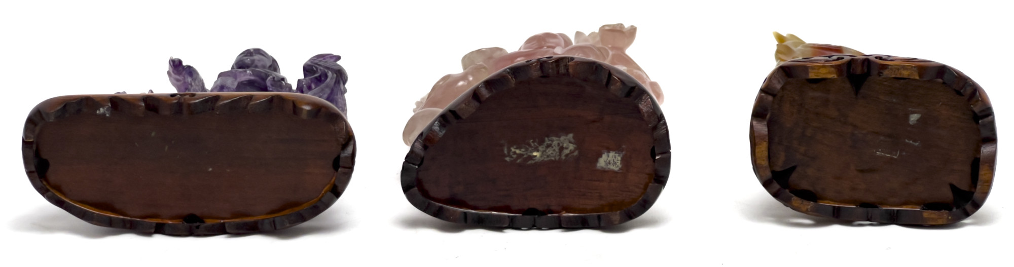 Comprising 6 carved hardstone figures, including two figures, elephant, bird, Buddha head, and Buddha figure