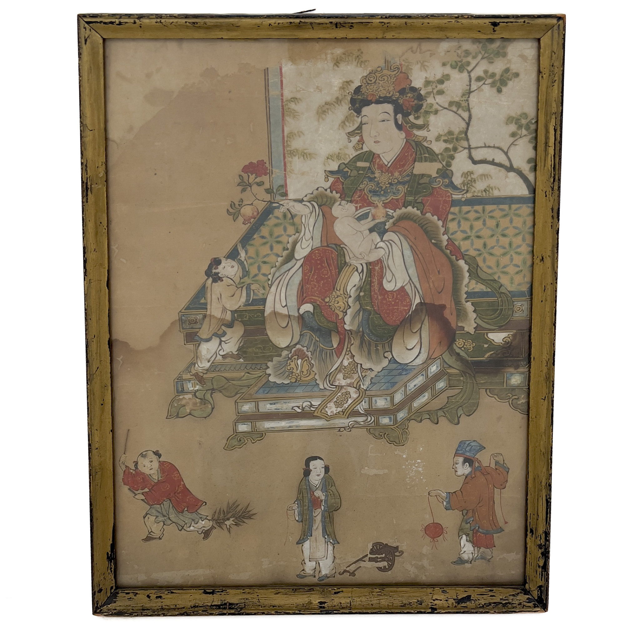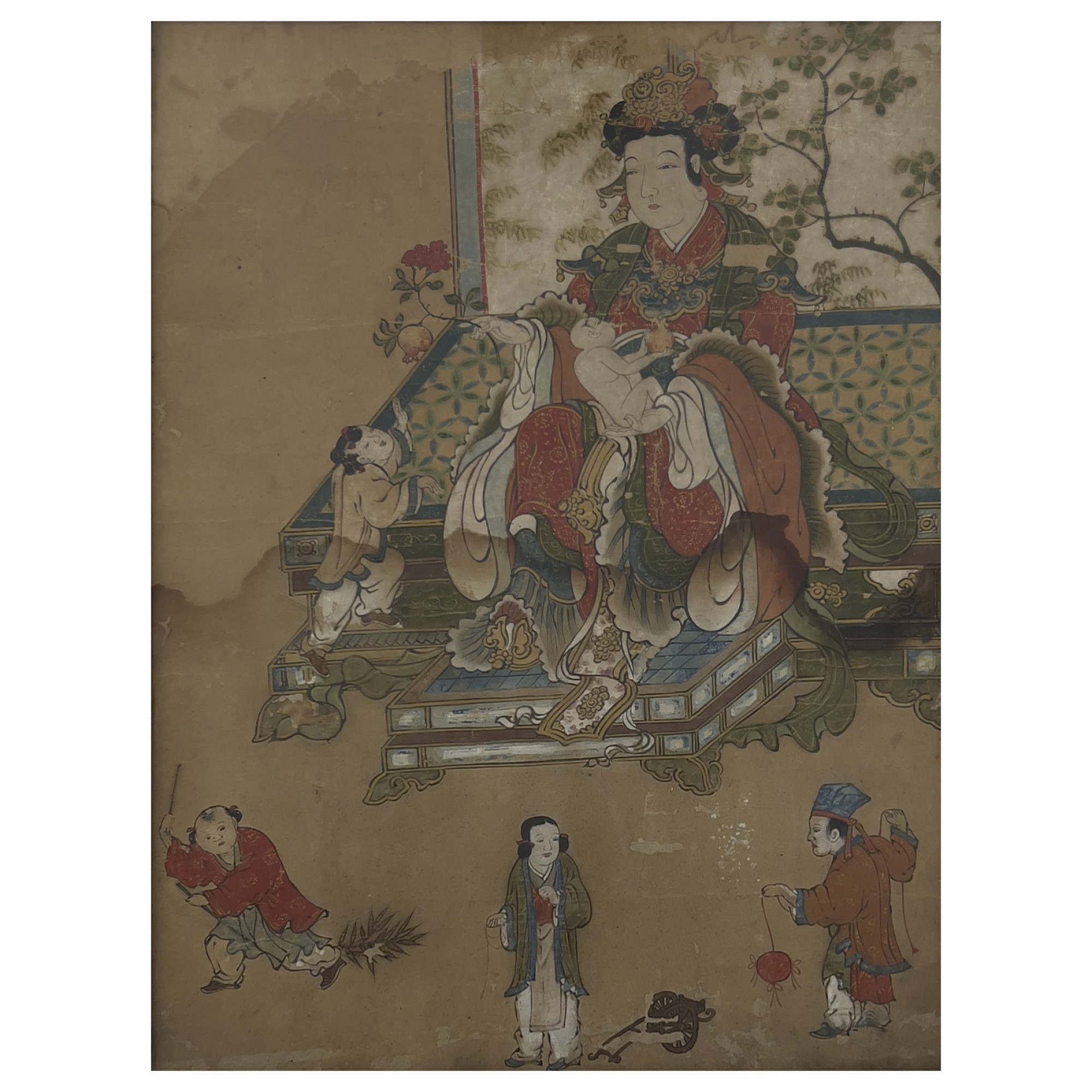 Chinese Painting - Noble Woman with Children and Pomegranates