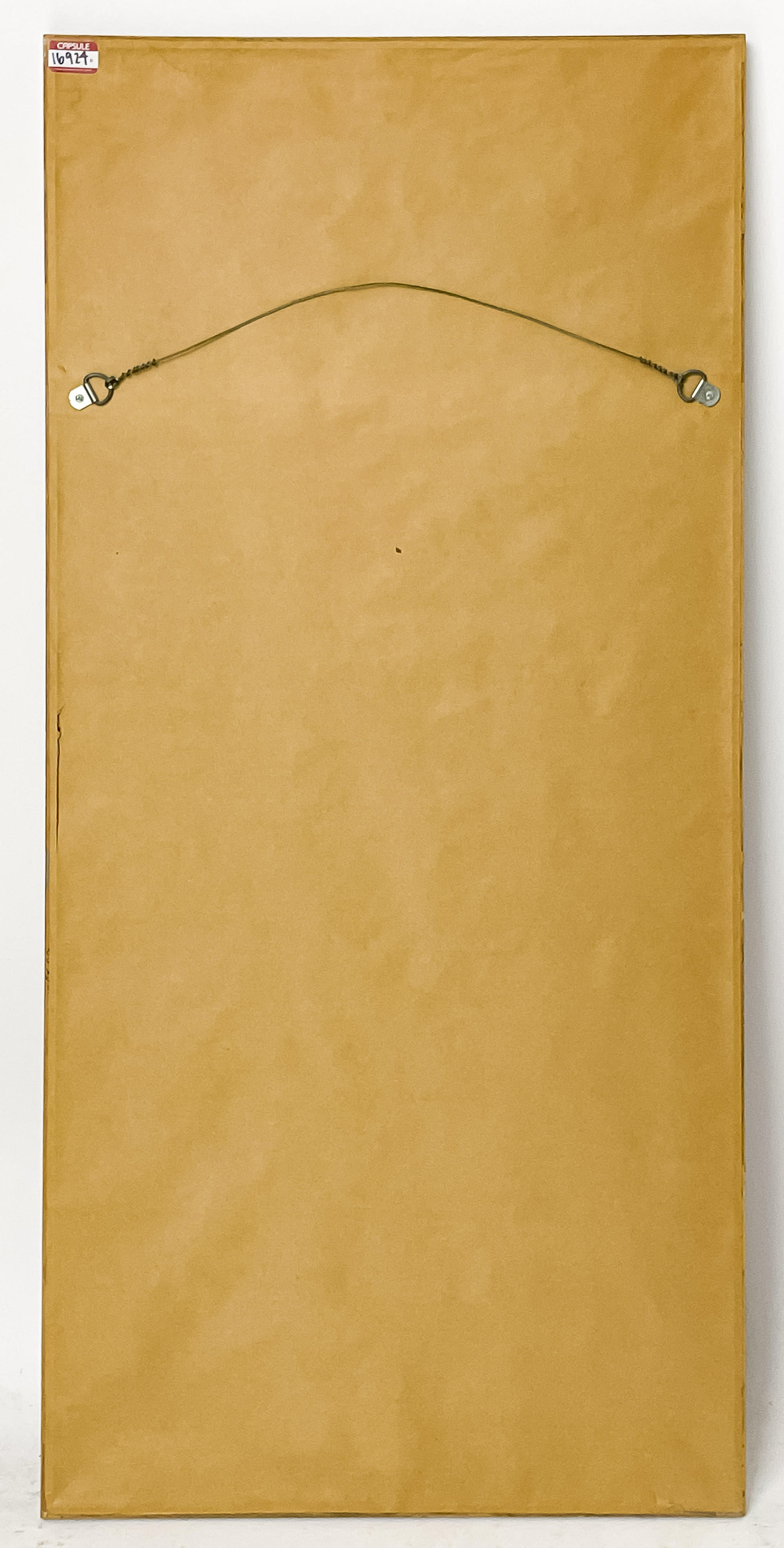 frame dimensions: 45 1/2 x 21 1/2 x 1 inches, wood frame with acrylic glazing