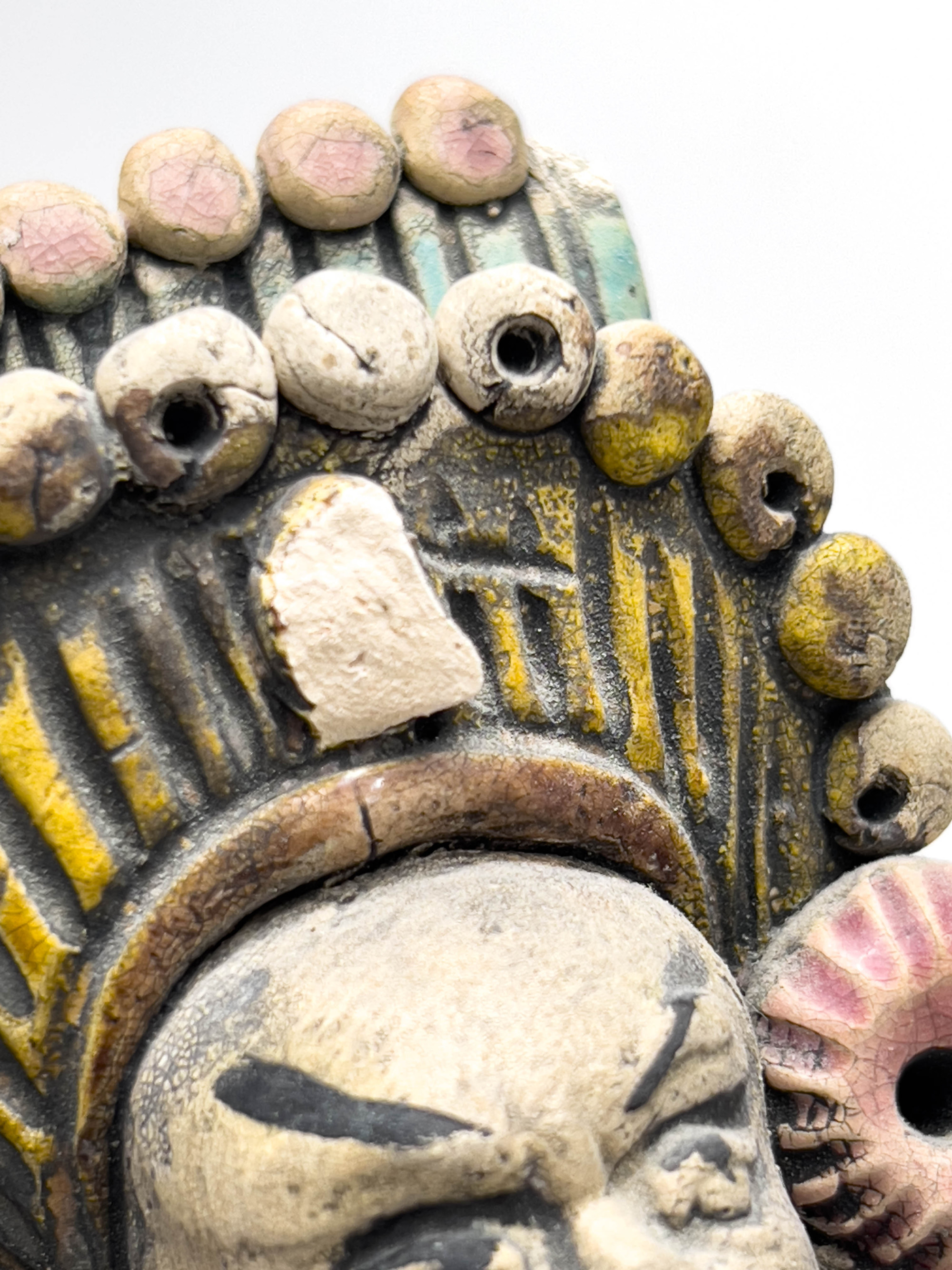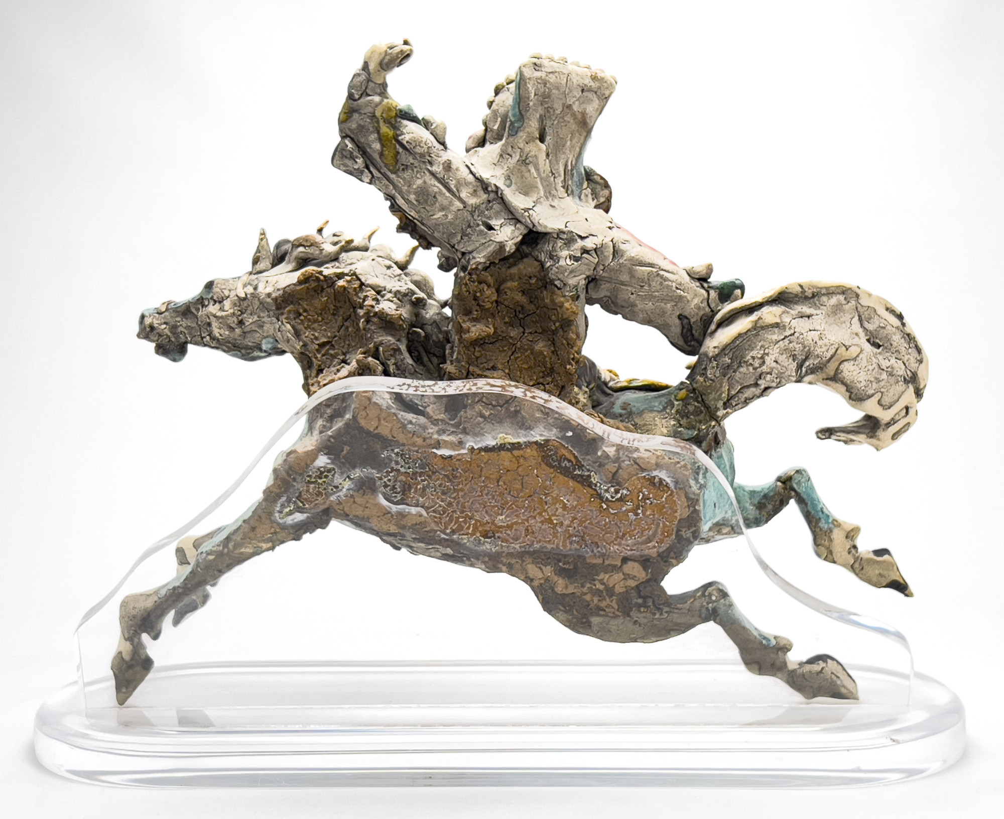 Ceramic Chinese roof tile warrior sculpture mounted to clear acrylic base