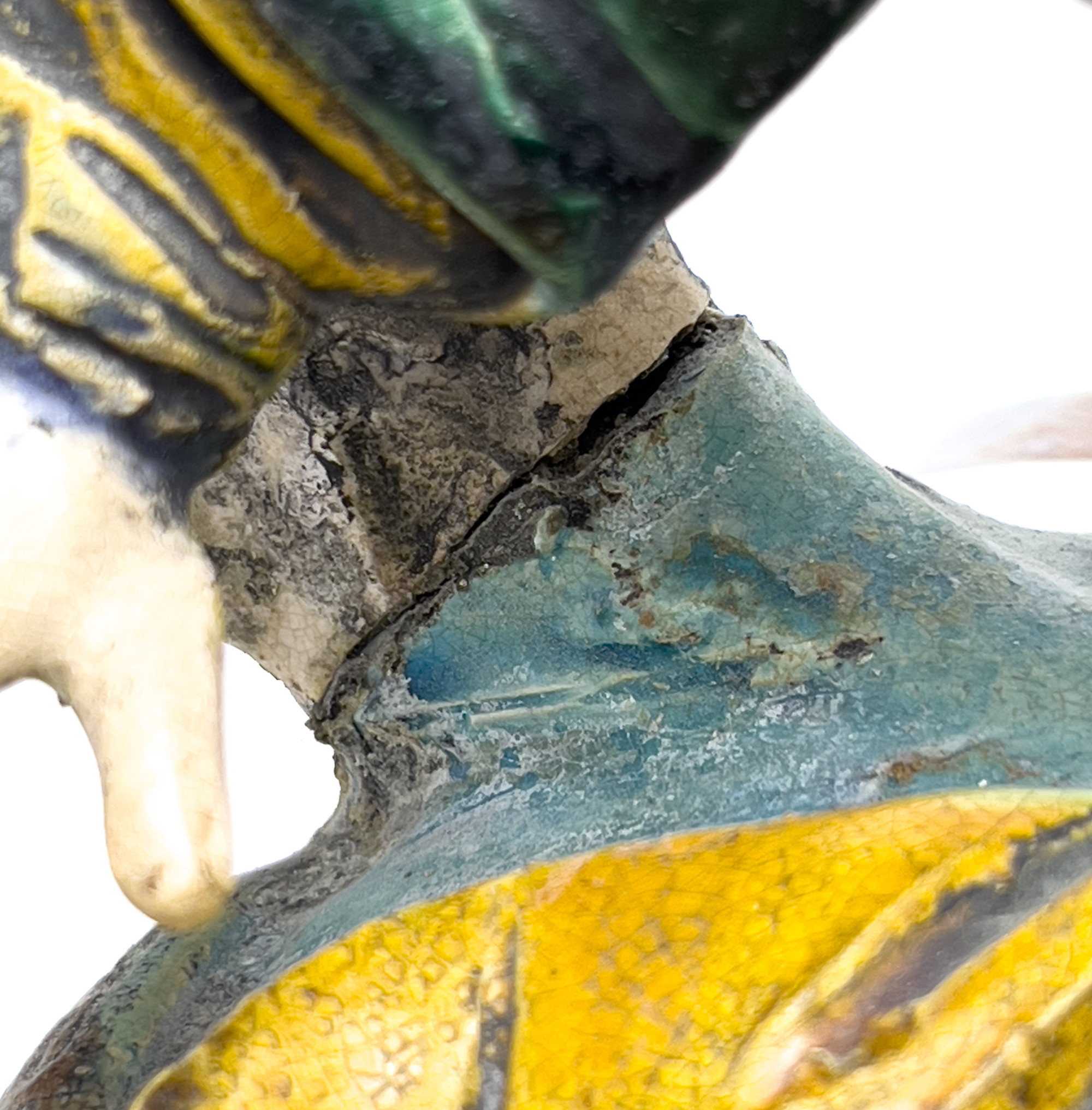 overall good condition, evidence of repairs to legs and tail, detached crown ornament, minor scattered losses and wear