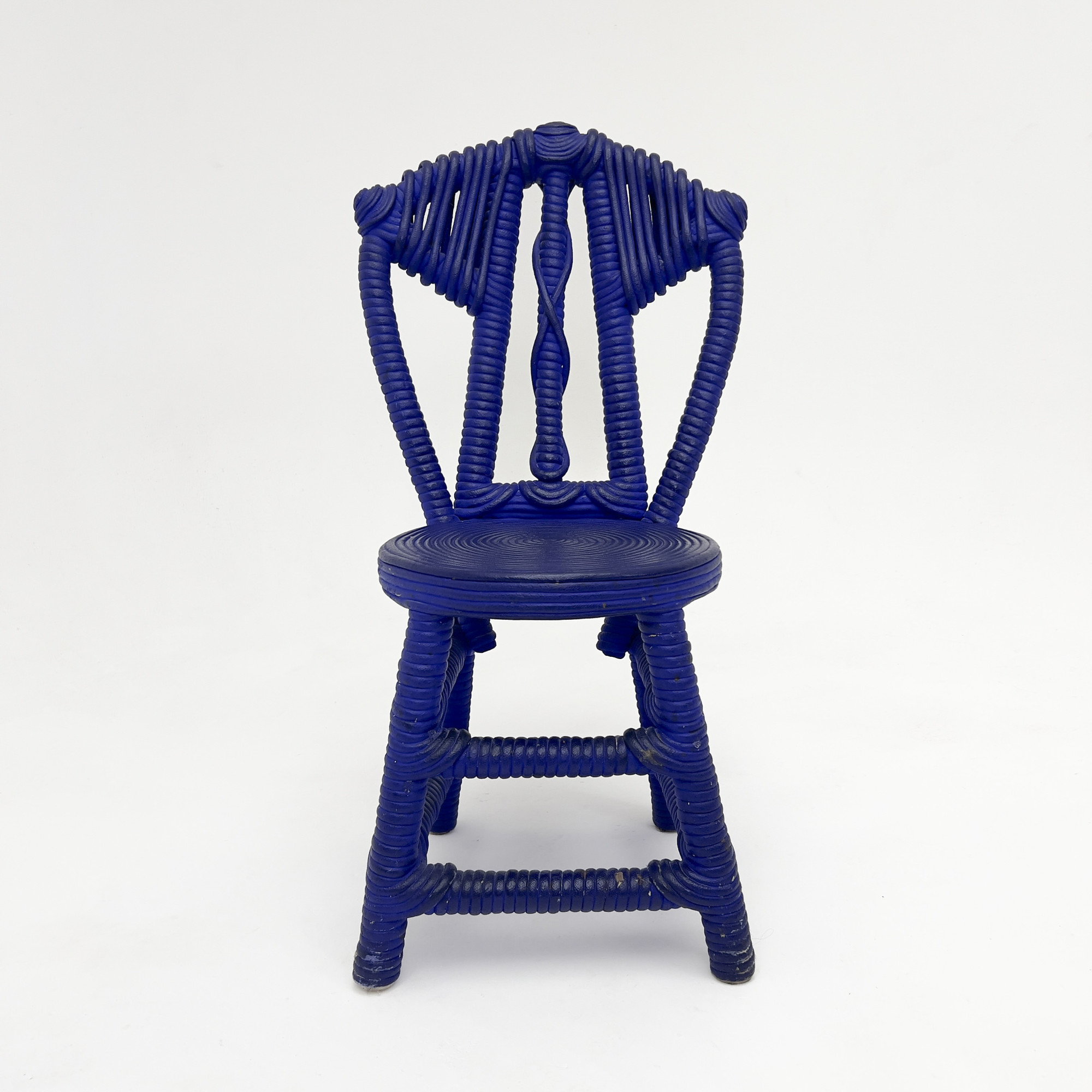 overall good condition, areas of loss to cotton cord and paint, some stains and residue to chair legs