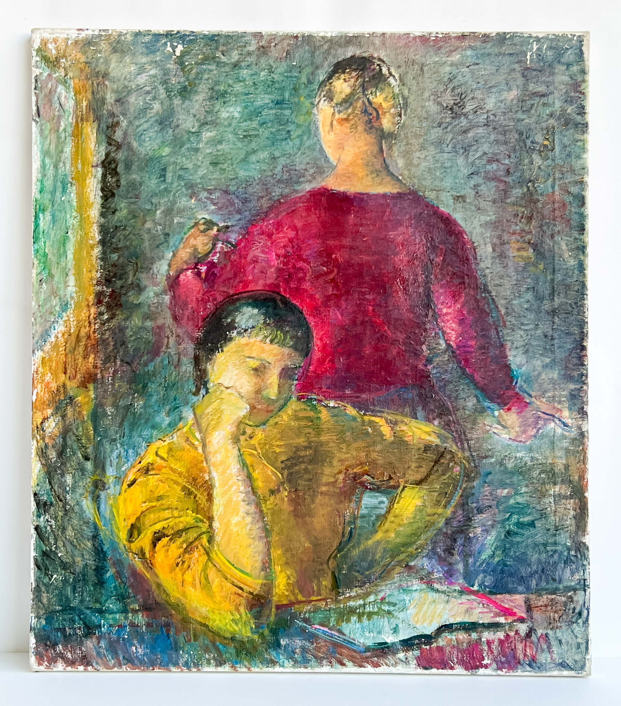 in overall good condition, with flake losses to edges and stretcher impressions, some areas of thin paint and exposed support in image