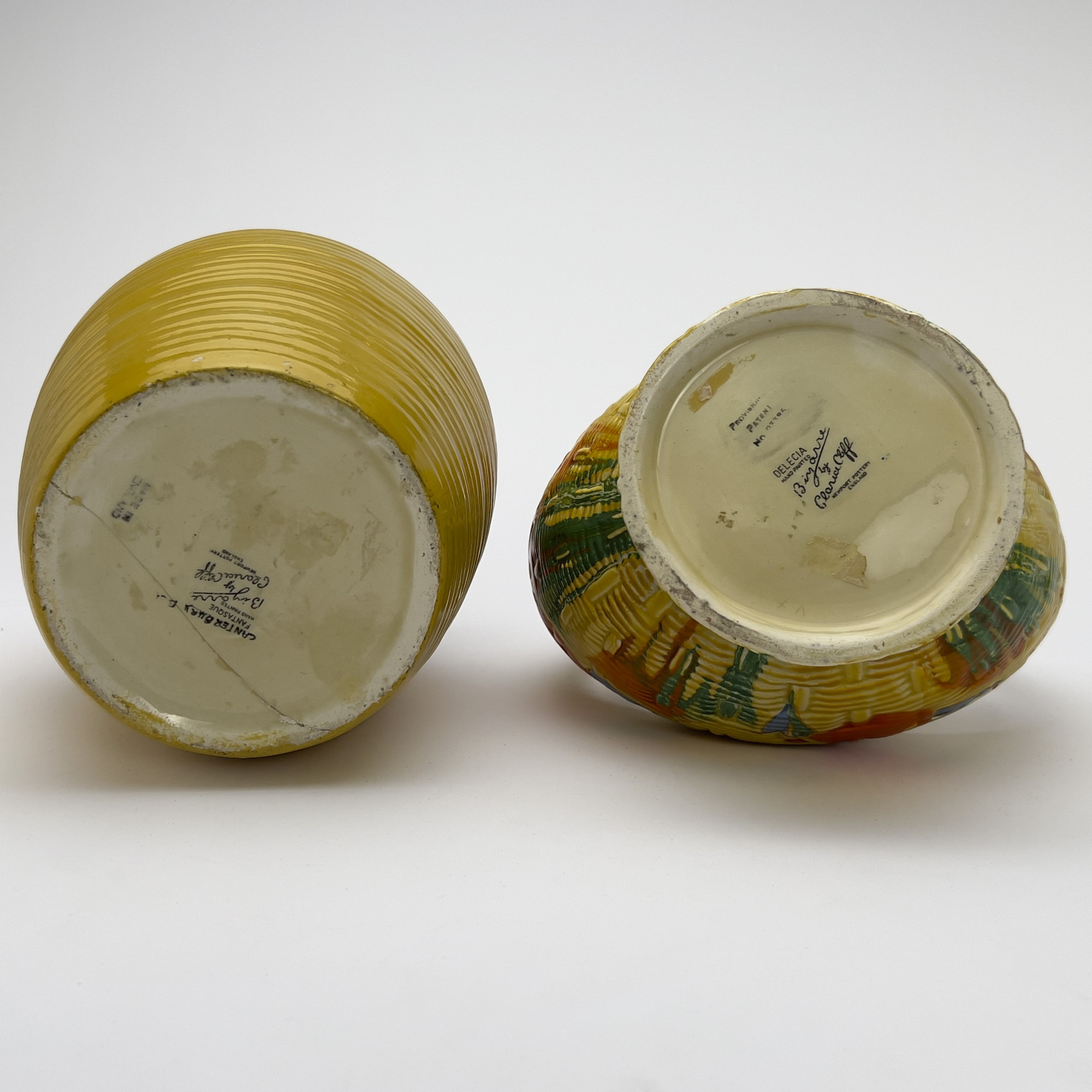 Bizarre ceramic Isis vase in "Canterbury Bells" and Gaiety basket in "Delecia"