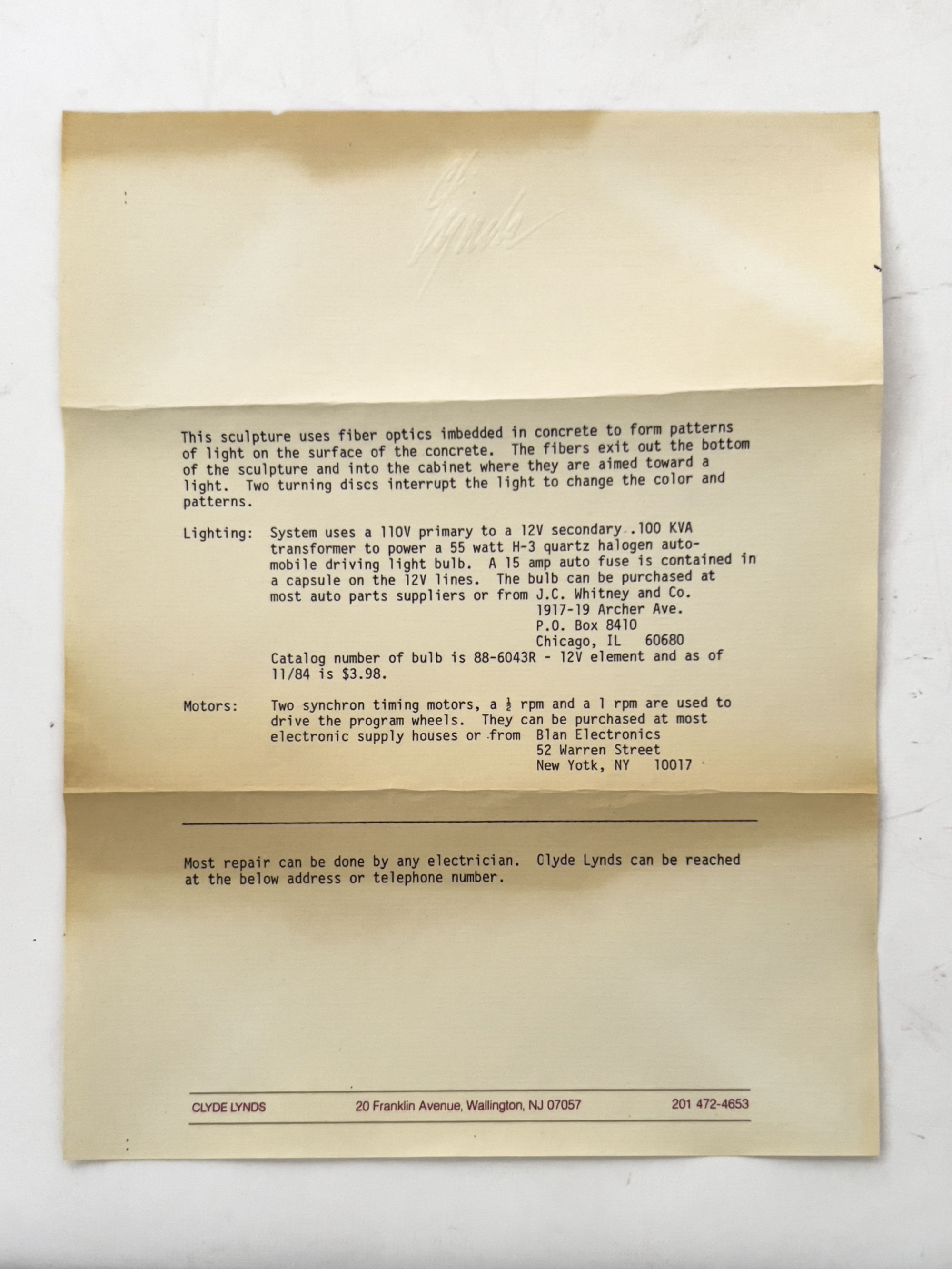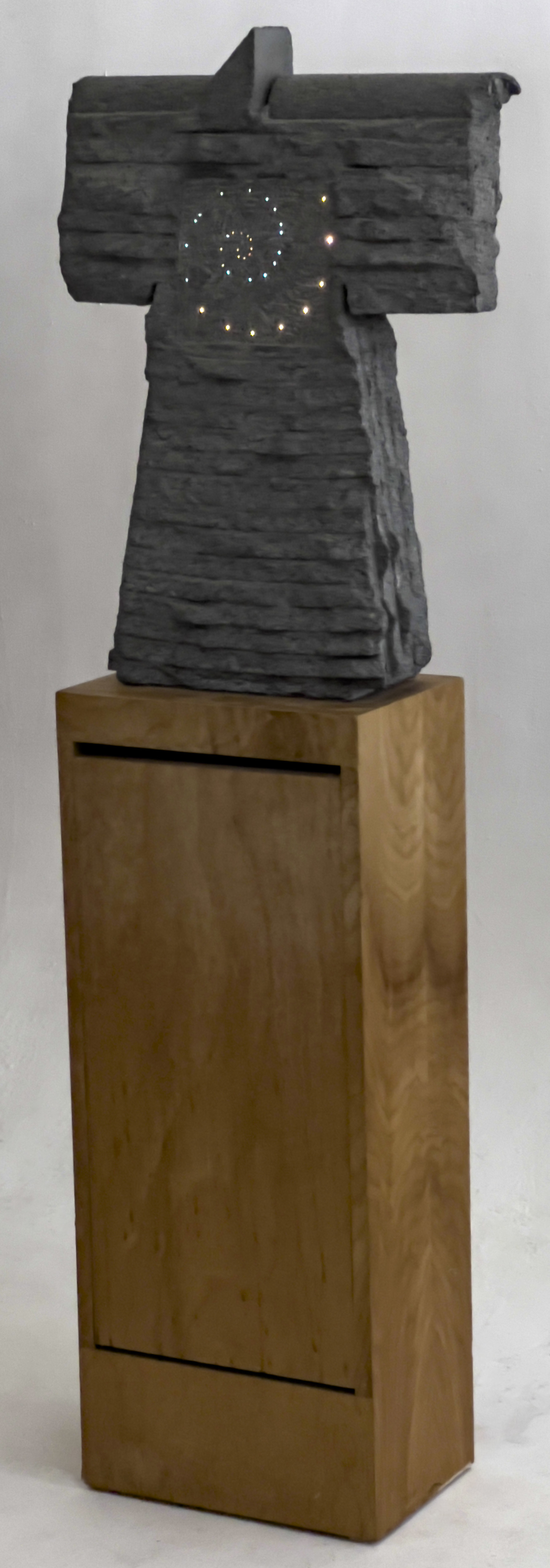 fiber optics, cement, wood 60 1/2 x 9 x 19 inches signature incised to wood, editioned 4/4