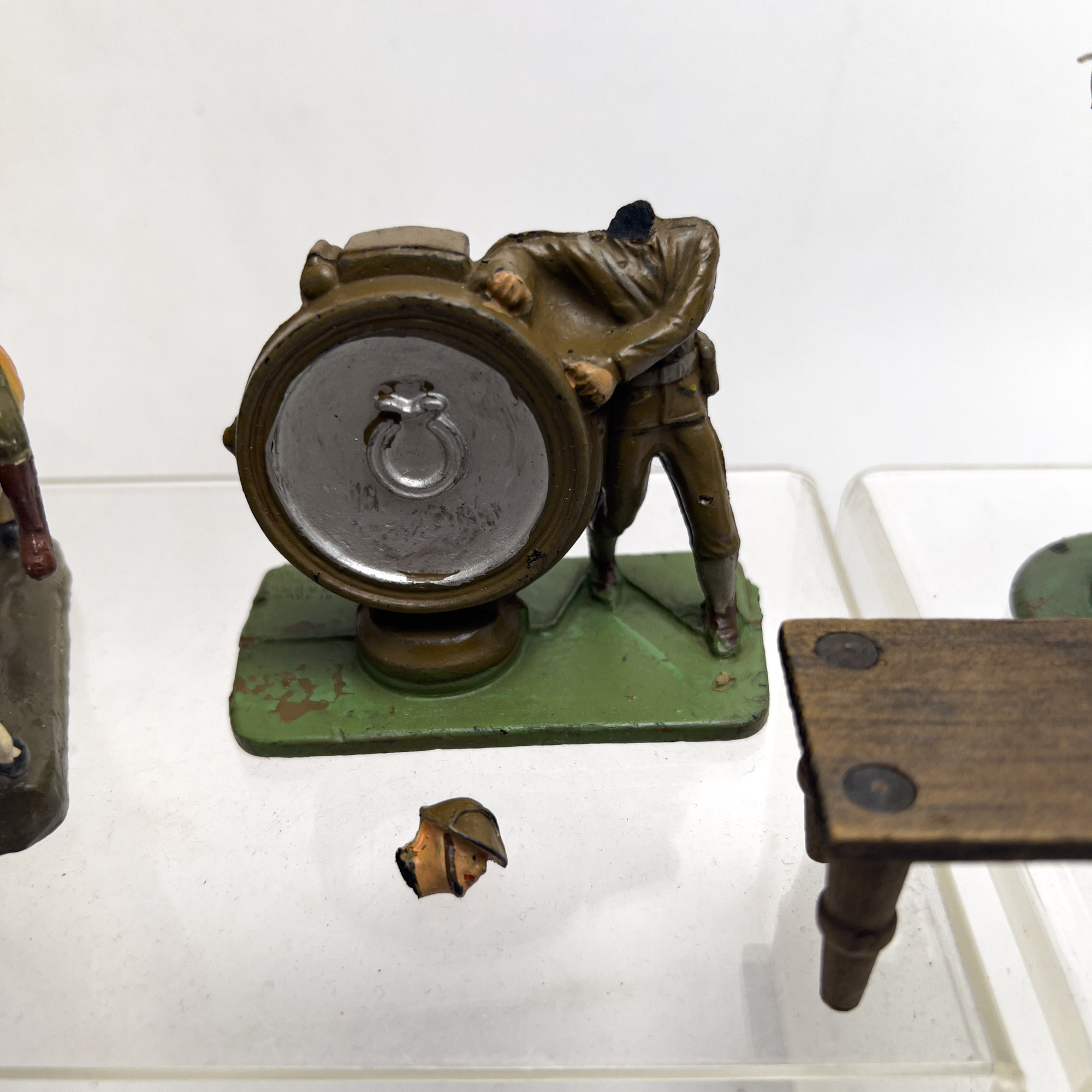 Group of toy soldiers including American and German Army soldiers by Beton, Barclay, and others, and 4 American flags