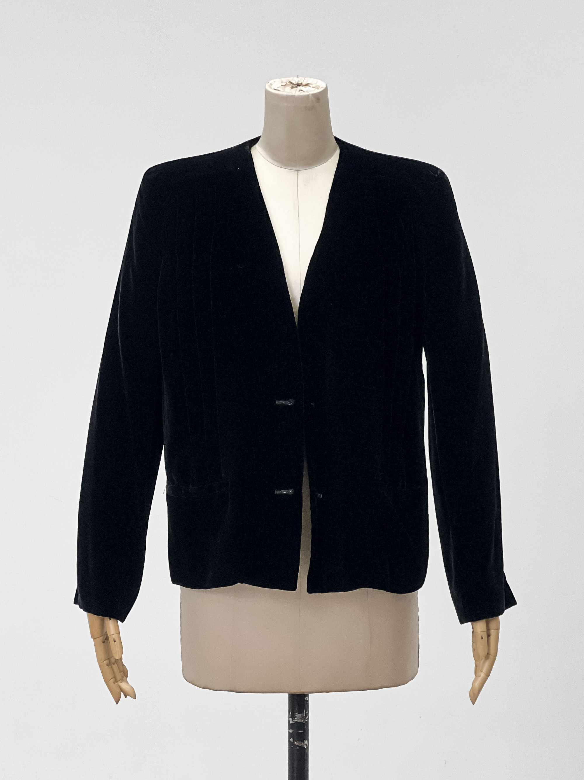 Bill Haire for Friedricks Sport crushed velvet jacket with gold trim, size 12