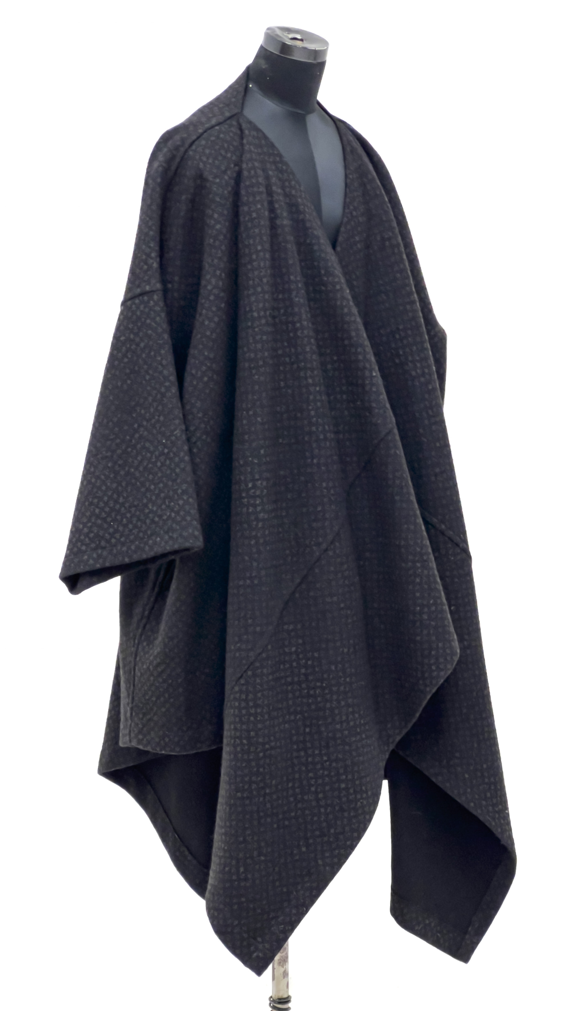 Draped asymmetrical black wool coat, size medium, 85% wool 15% nylon