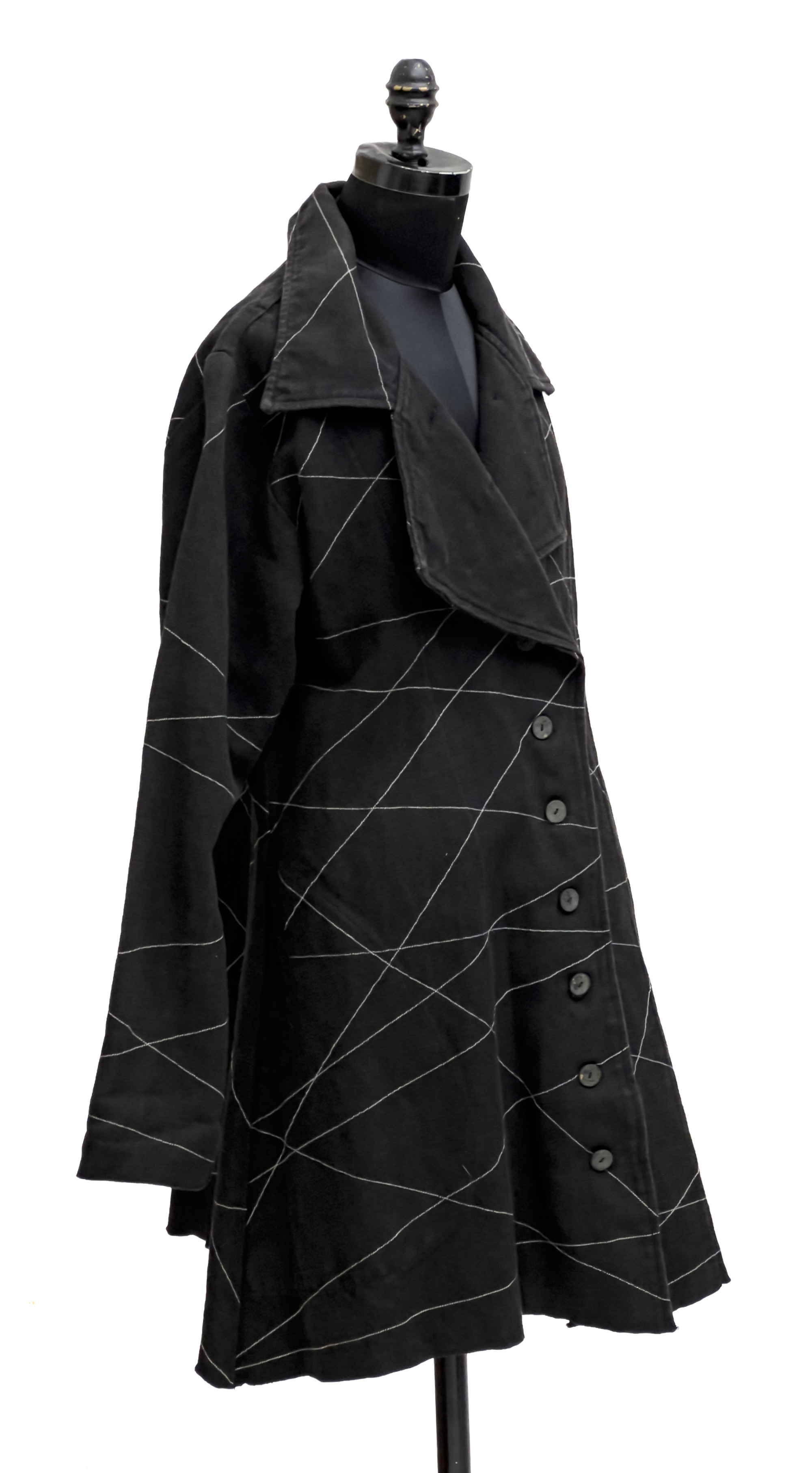 Comprising black linen jacket with white lines