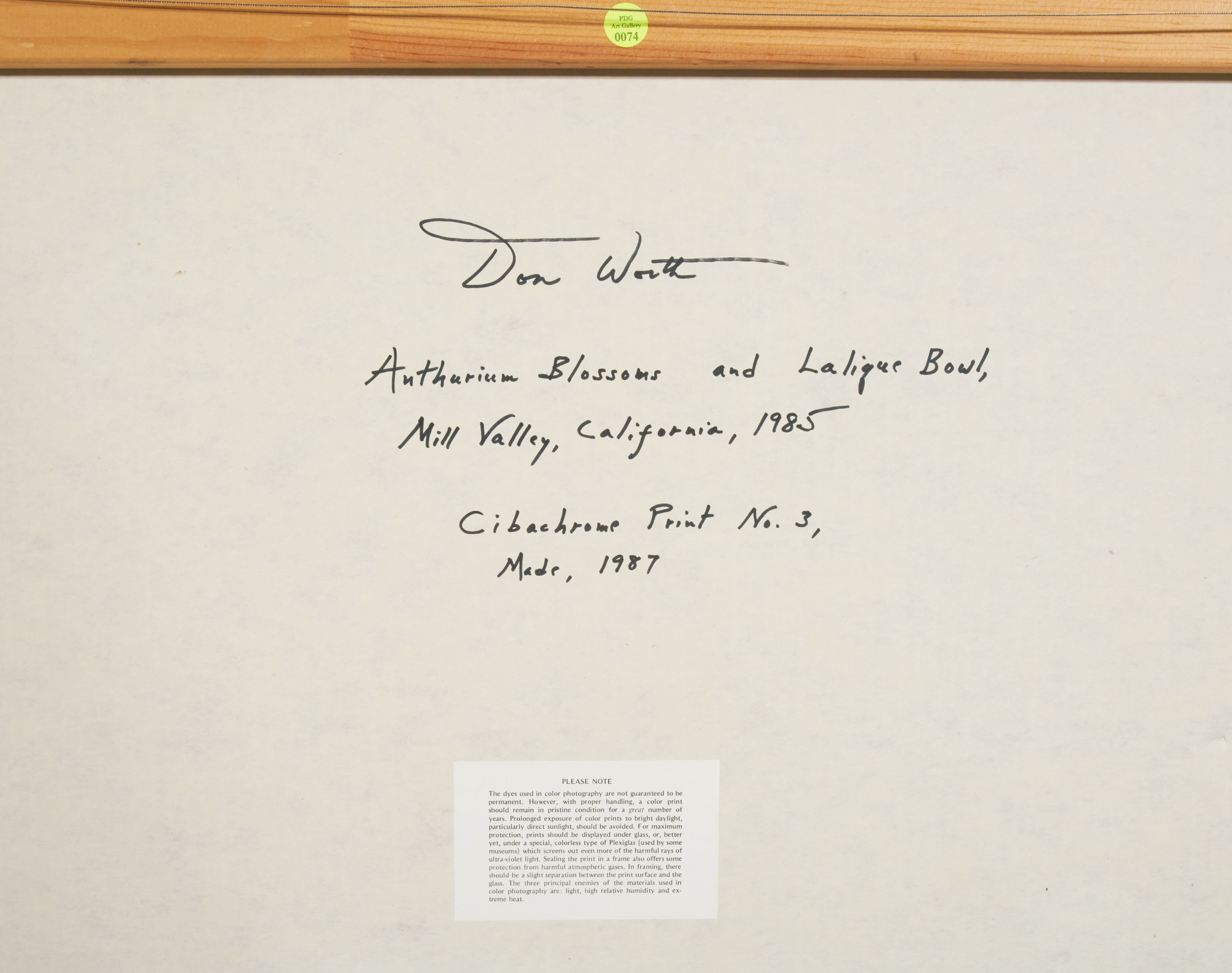 Page navigation Lot 100 Anthurium Blossoms and Lalique Bowls, Mill Valley California 1985