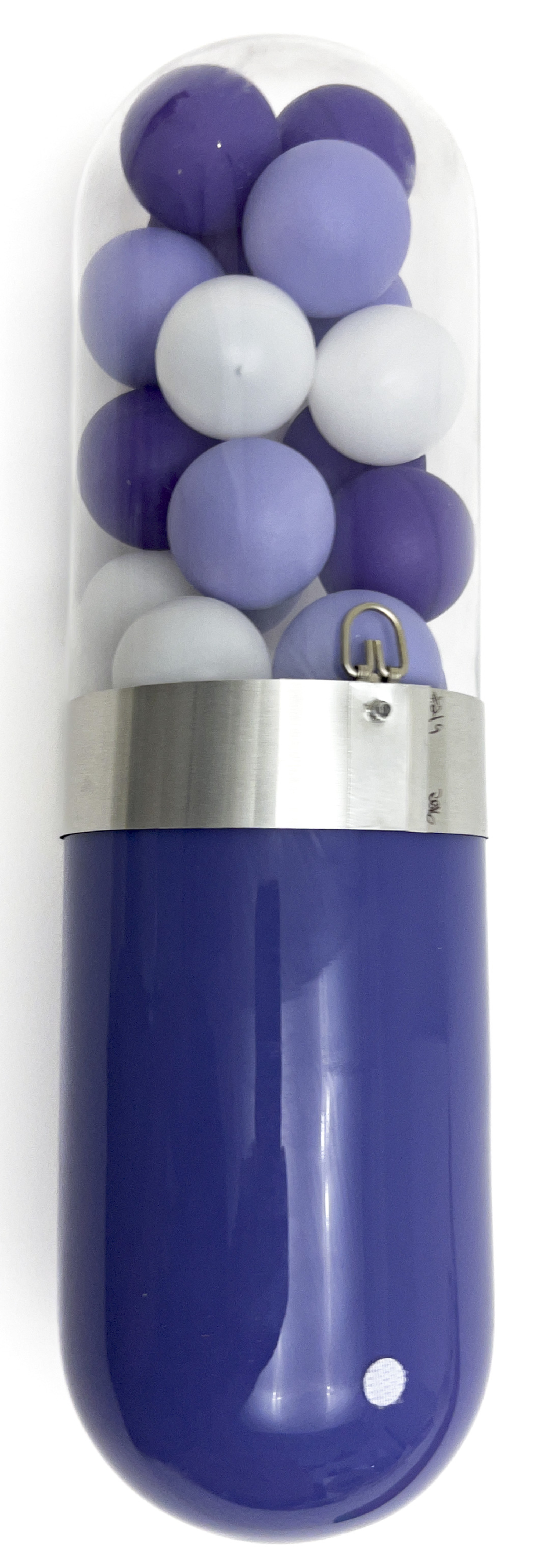 glass and mixed media 14 x 4 x 4 inches signed on ball
