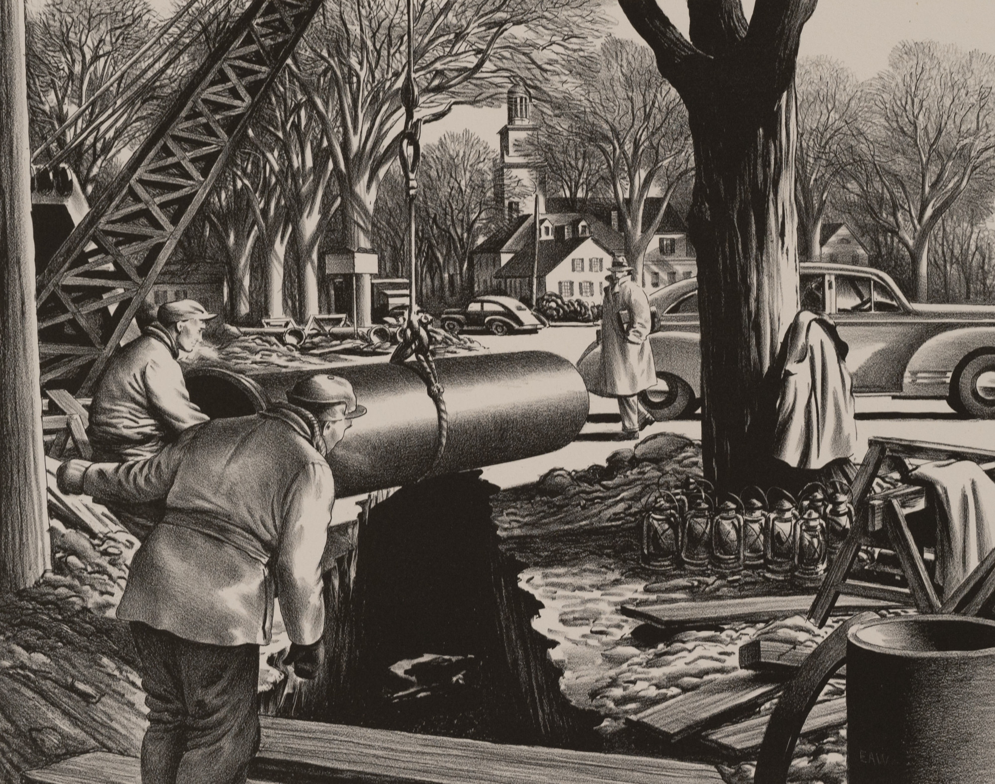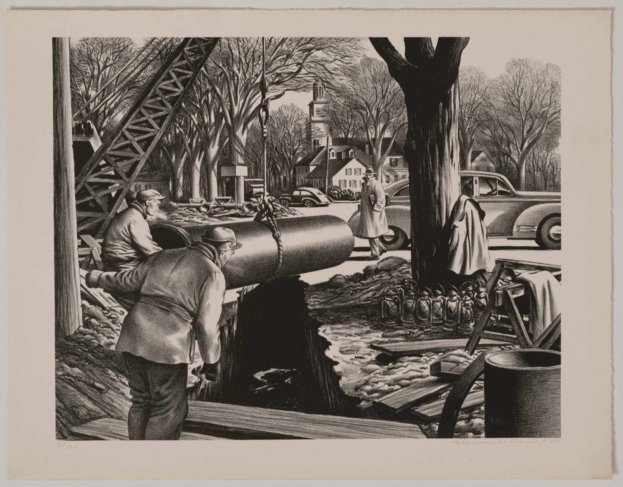Page navigation Lot 72 Untitled (Pipeline construction in a New England town)