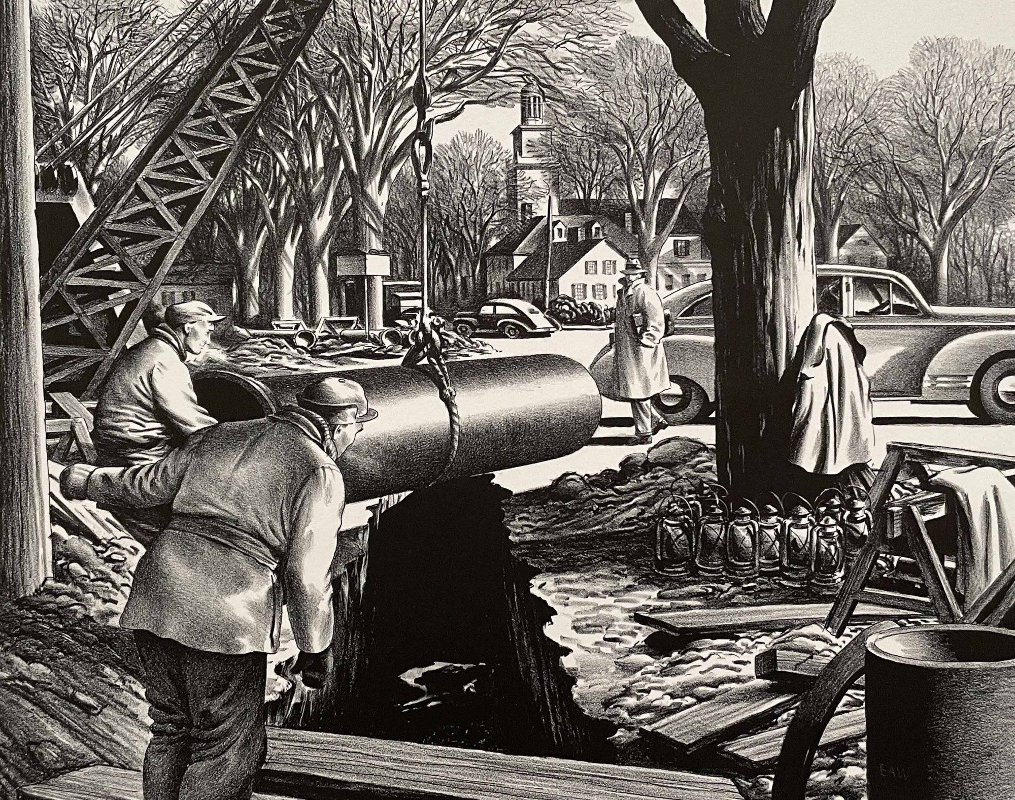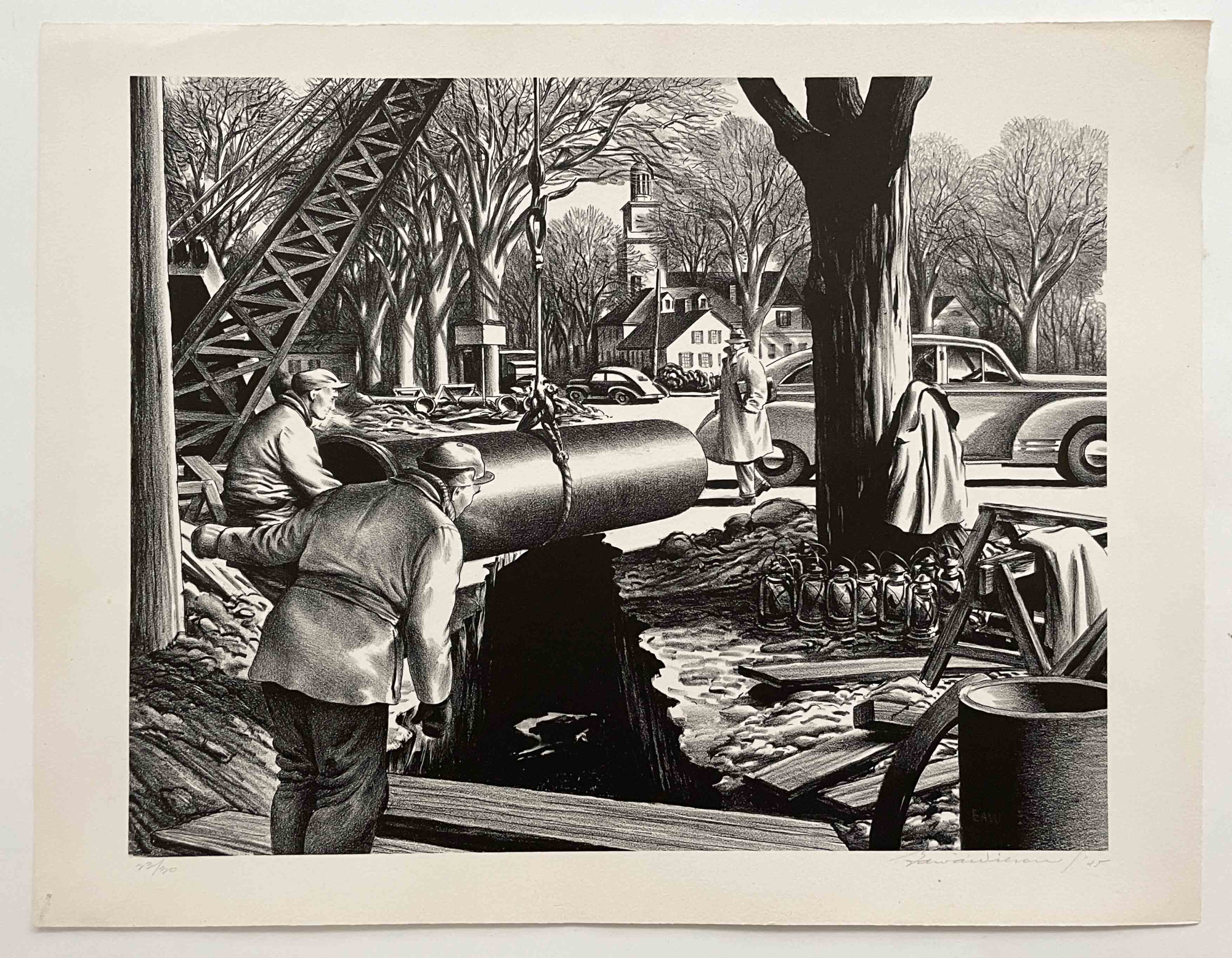 Page navigation Lot 154 Untitled (Pipeline construction in a New England town)