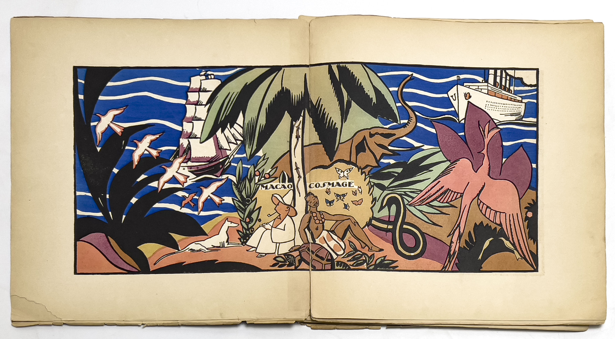Published by Nouvelle Revue Française, printed by Bellenand Fontenay-Aux-Roses, featuring hand-colored wraps with black lettering and illustrated with pochoir plates throughout