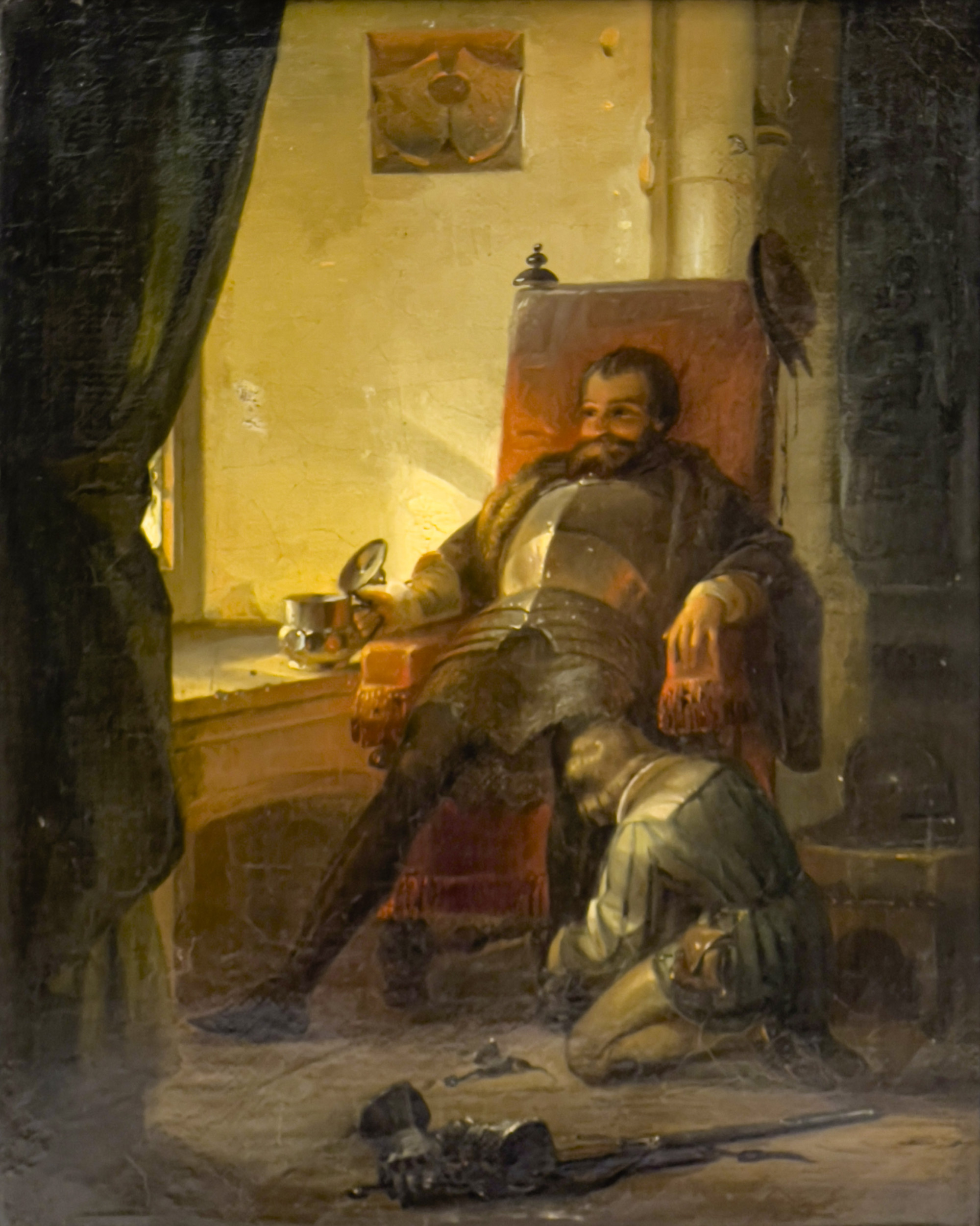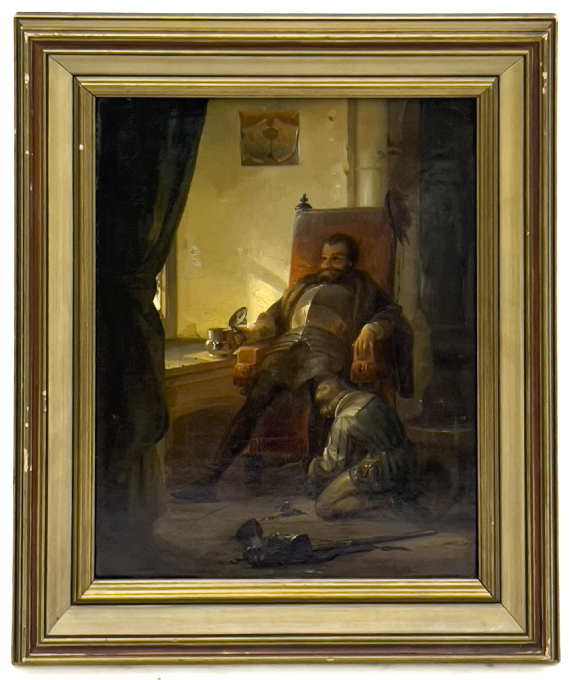 Small oil painting of a knight and his attendant