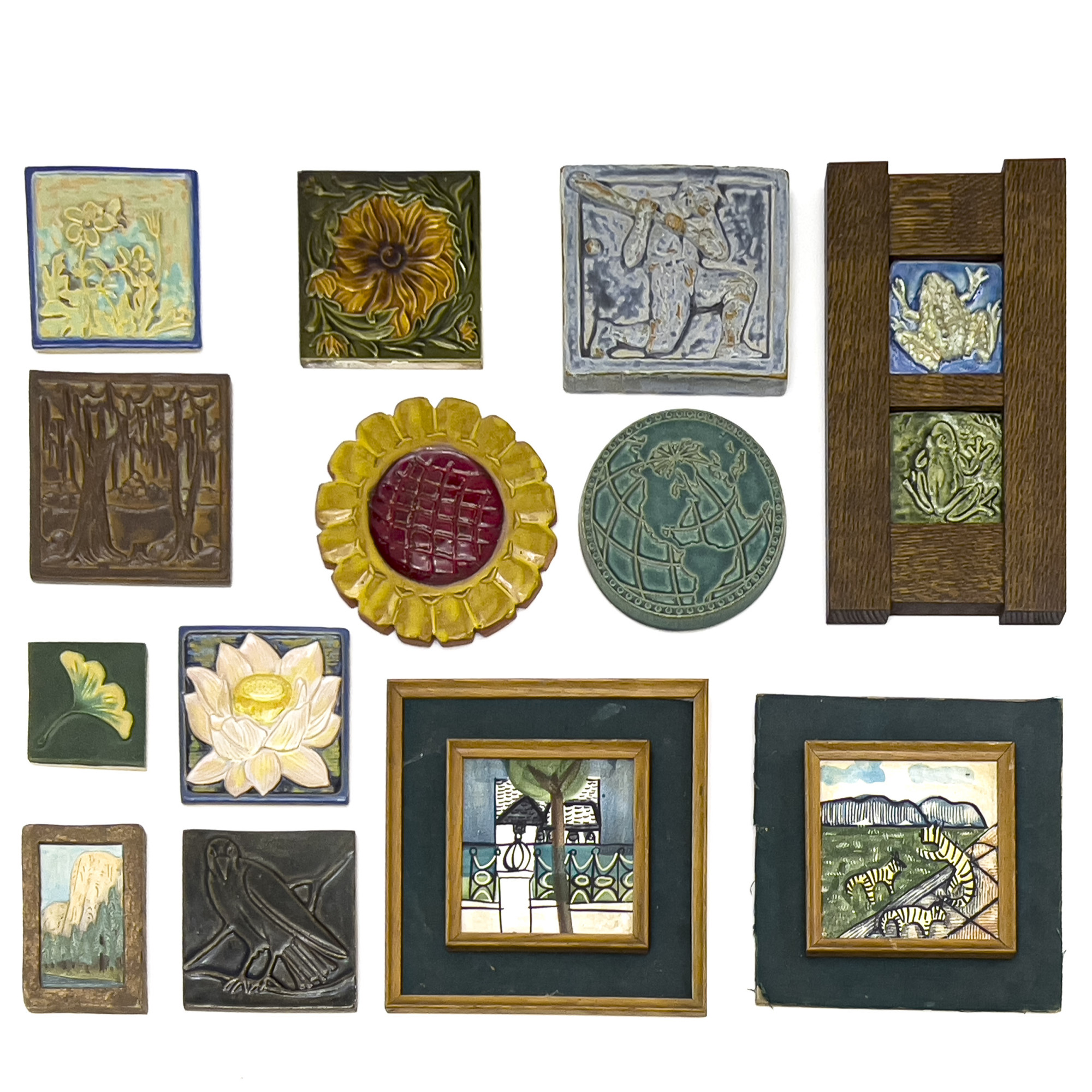 ceramic, wood frames largest: 14 1/4 x 7 1/2 inches with some manufacturer marks