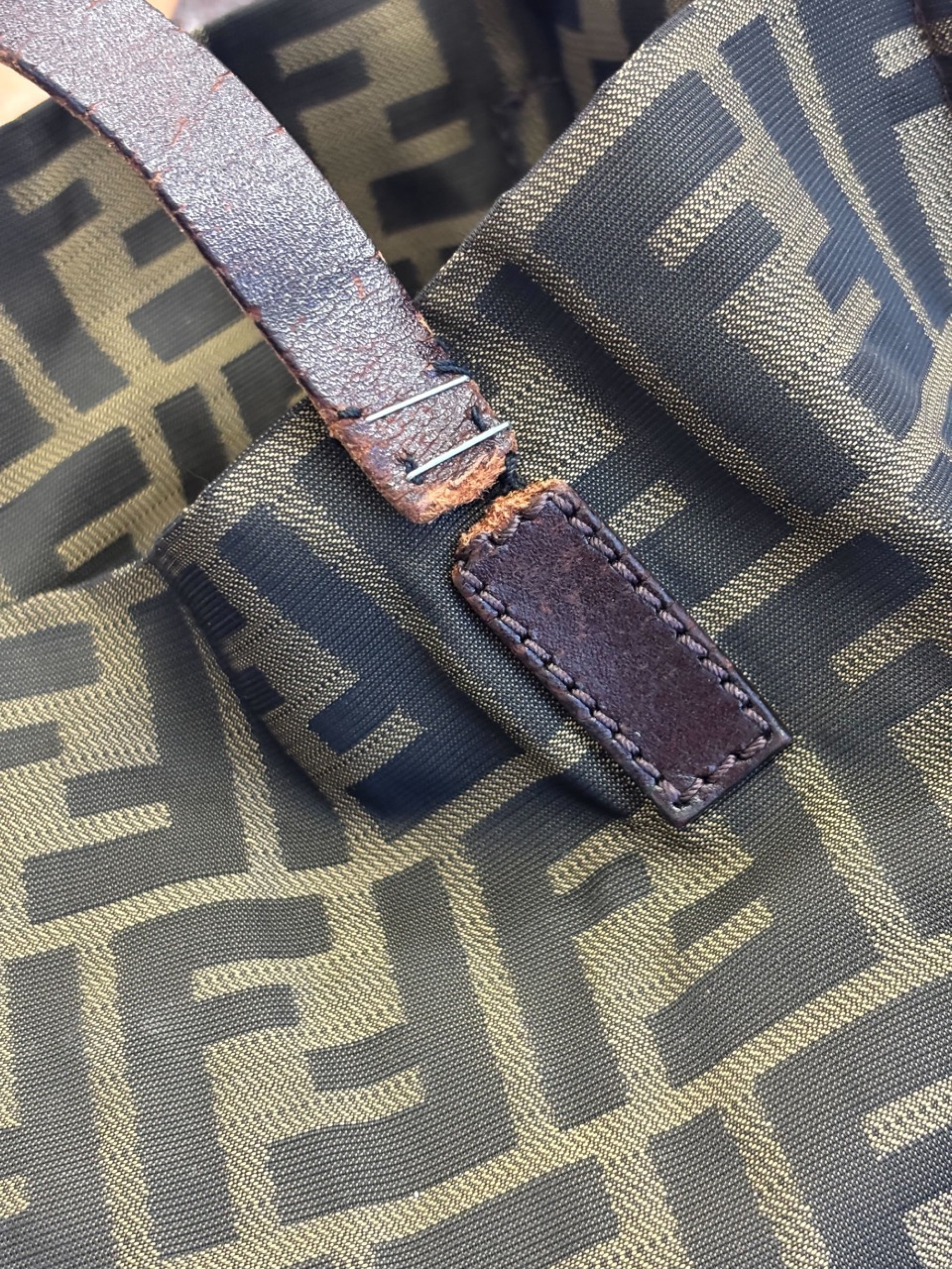 overall fair condition, wear and damage to tote handles, one handle torn and not professionally repaired
