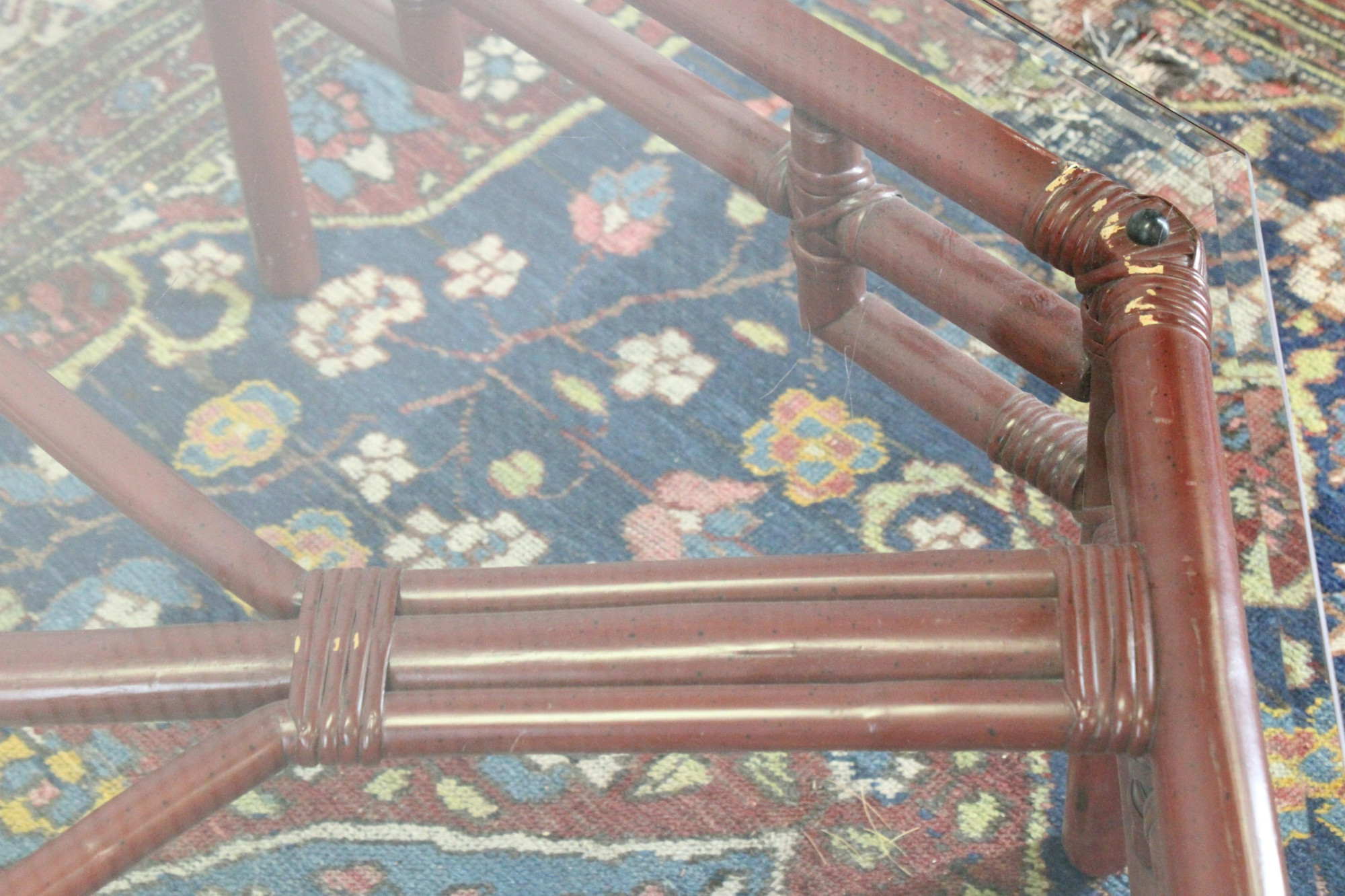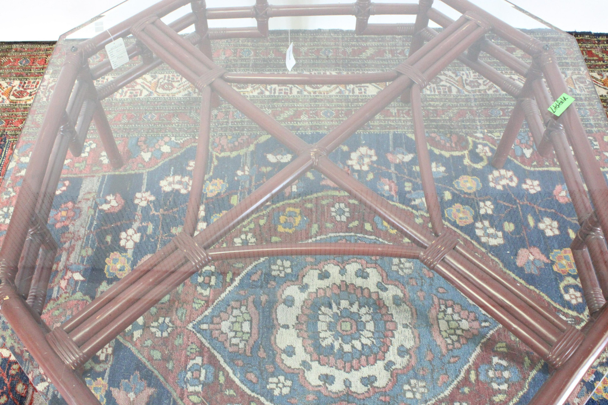 Ficks Reed Octagonal Panted Bamboo Cocktail Table with glass top Dimensions: 43 x 42 1/2 x 17 Property from a Woodbury, CT home (MZIL1106)(MM)
