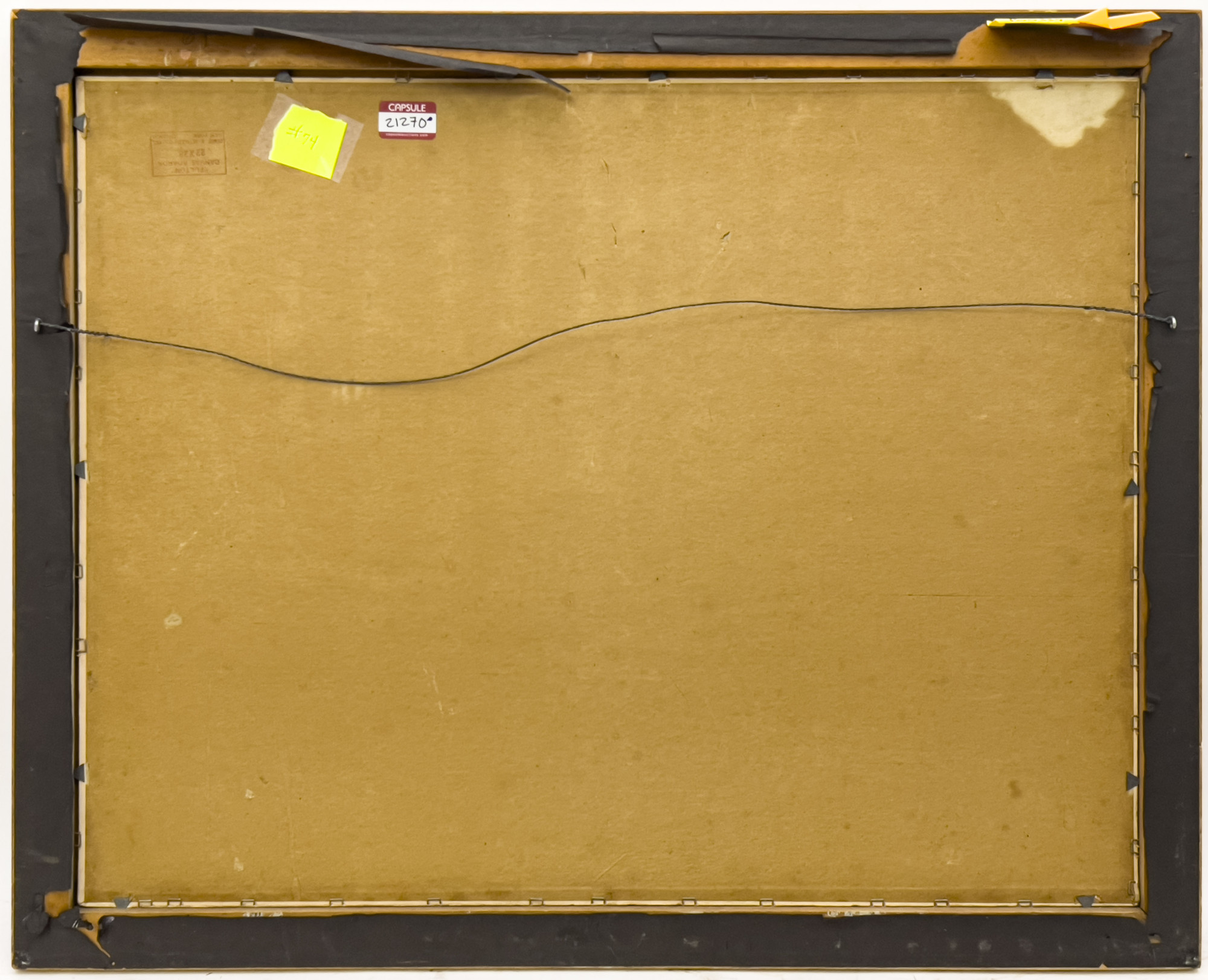 Art has not been examined out of the frame unless otherwise stated. Frames, lampshades, or items described as “supplementary” are not considered integral to the value of the lot and are excluded from condition assessments. This includes any mat, mounting, glazing, hanging apparatus, case, box, or stand. Timepiece movements, lighting elements and items with mechanical or electrical components have not been thoroughly tested and are not covered under warranty by Capsule.