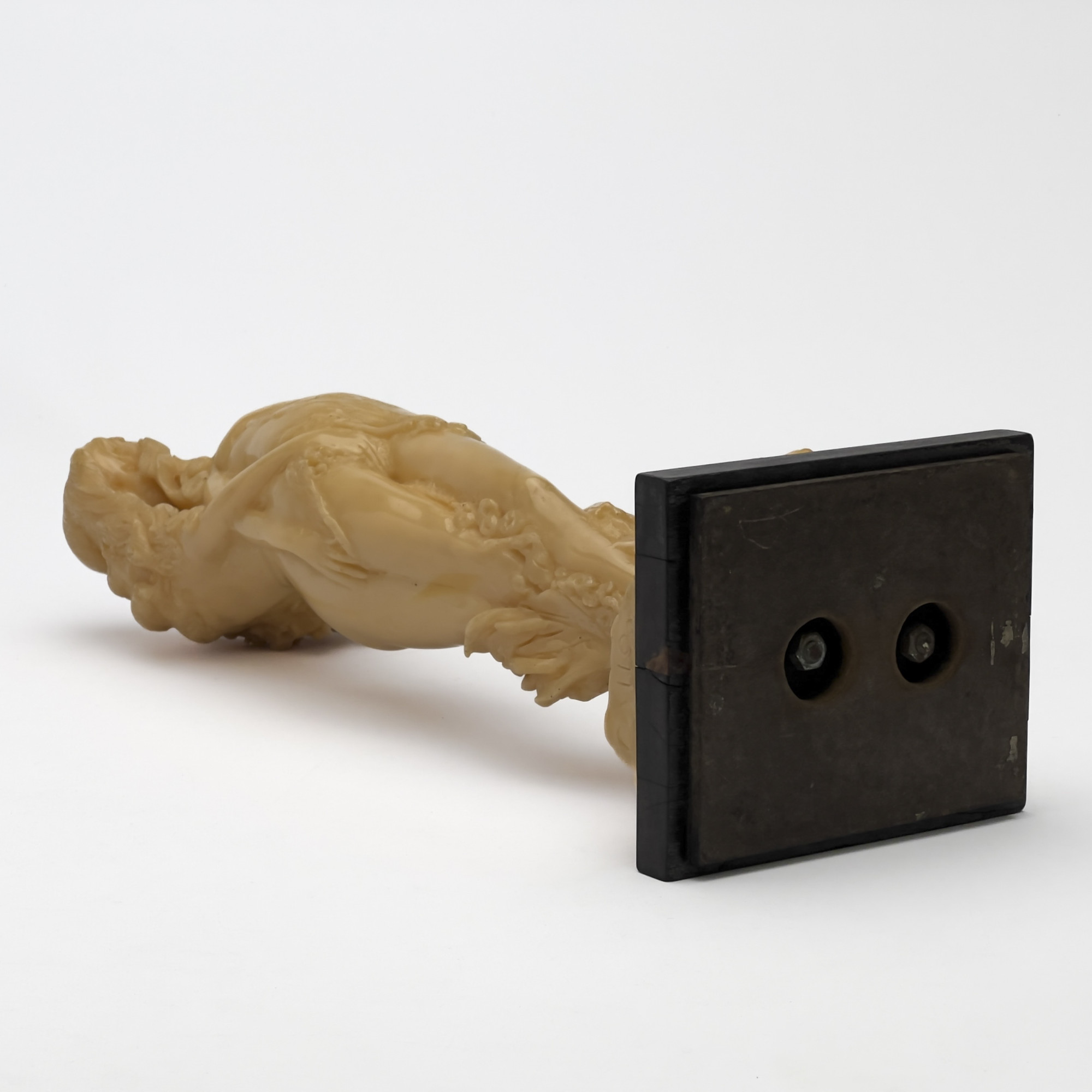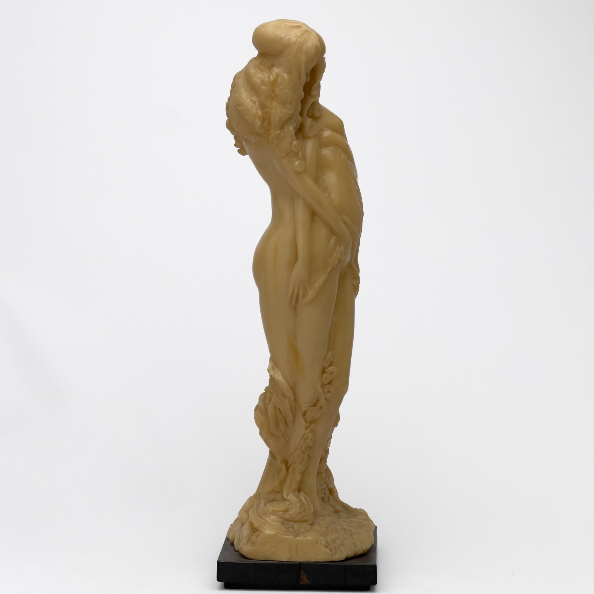 resin, wood base height: 17 1/2 inches signature inscribed to side near base